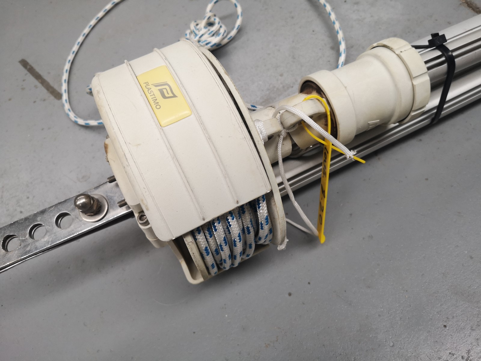 Enrouleur PLASTIMO complet 8.20 métres (étai 5mm de 8.70 métres), diamétre tambour 170mm, diamétre tubes 31mm, rail 8mm