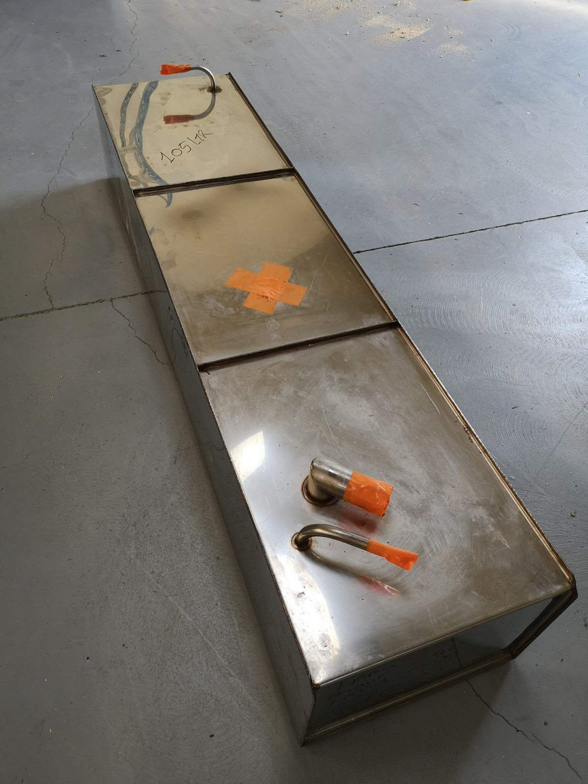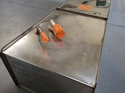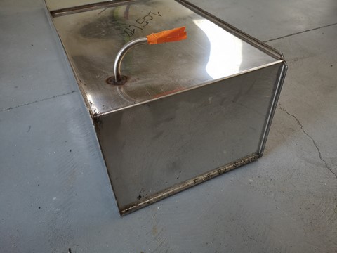 Réservoir inox pour carburant essence ou gasoil.Dimensions:-largeur 330mm-hauteur 240mm-longueur 1400mm-volume 105lt