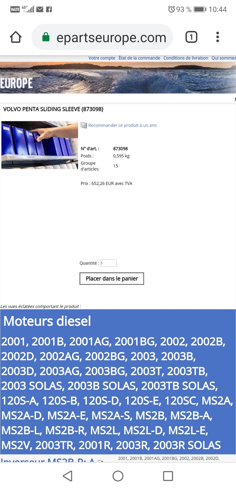 Cône VOLVO neuf pour inverseur MS2 et 120S (voir liste dans la galerie photos)