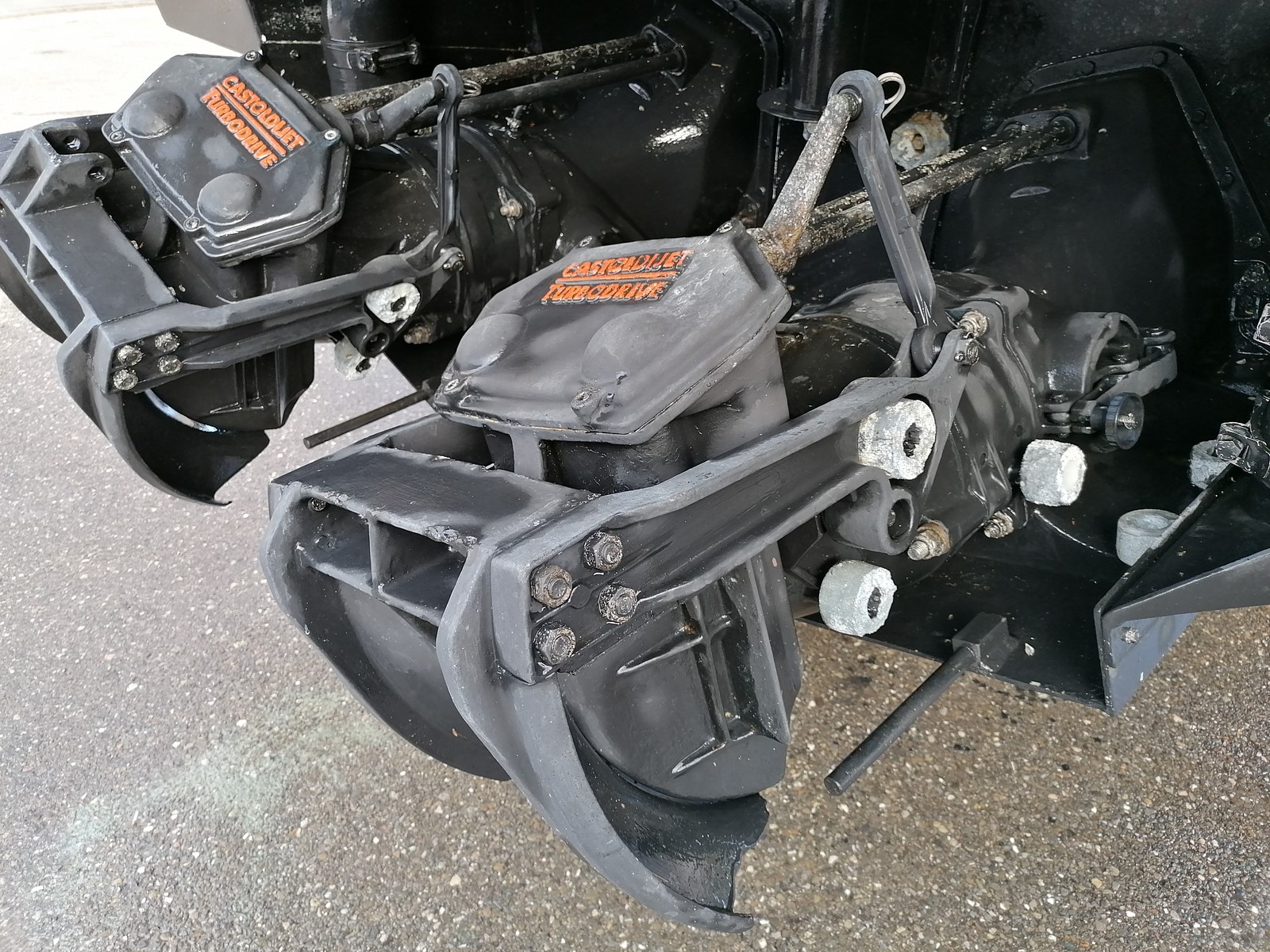 lot de deux turbines CASTOLDIJET TURBODRIVE 238, puissance maximum 340cv, pas d'électrolyse navigation uniquement en eau douce, vendu complet avec électrovanes, verins et pompe hydrolique