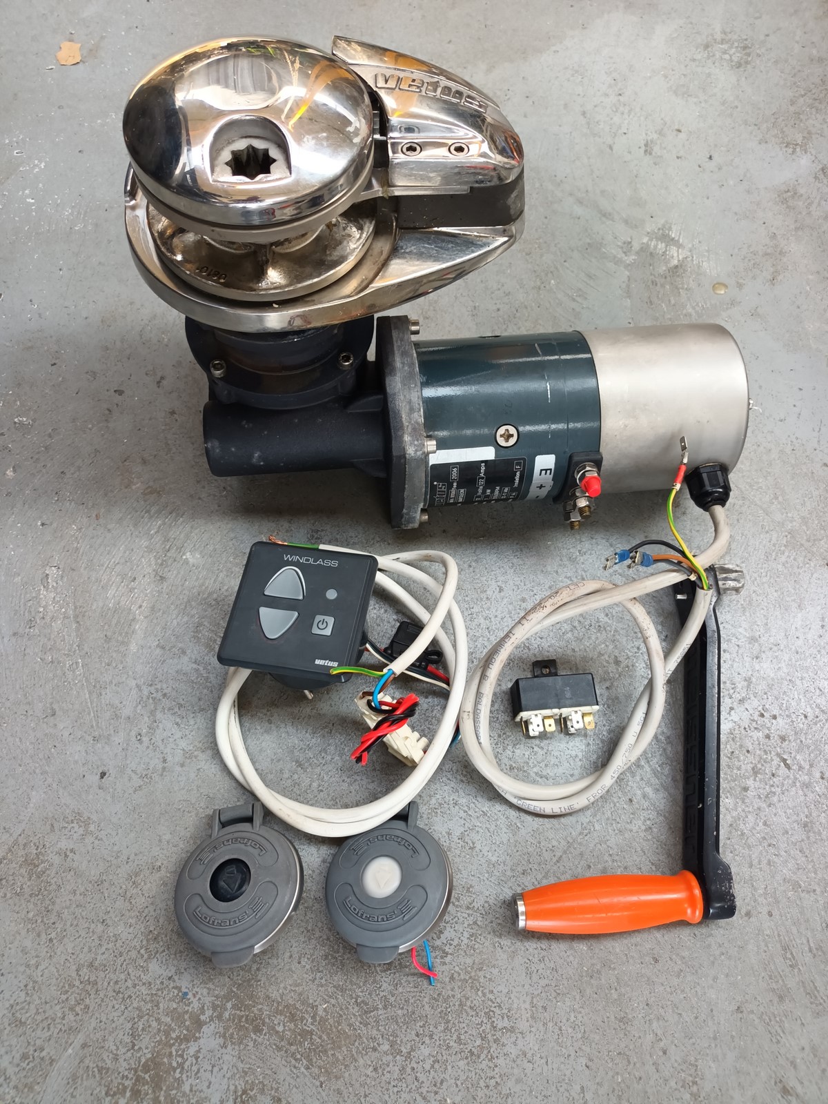 guindeau inox VETUS 1000W 12V pour chaine de 8mm, complet avec chéma électrique pour installation
