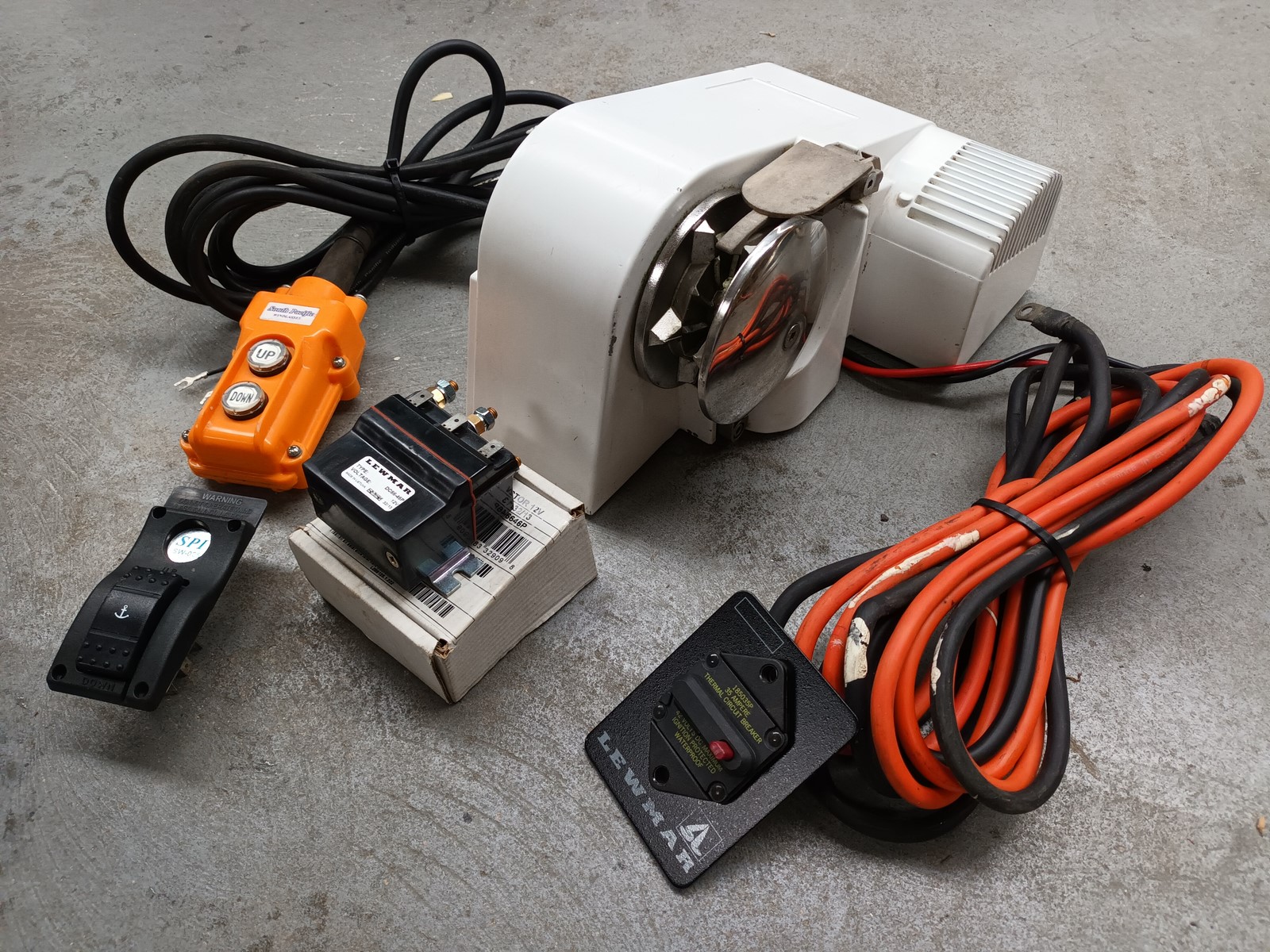 guindeau verticale SOUTH PACIFIQUE 12V 700W complet avec télécommande avant, poupée mixte corde et chaine 8mm