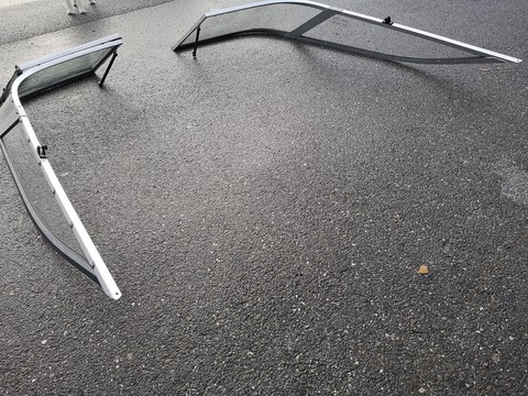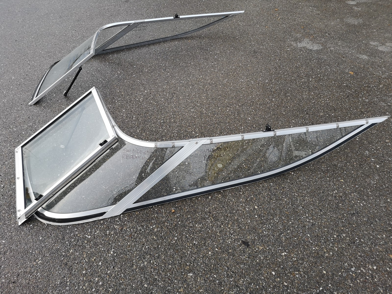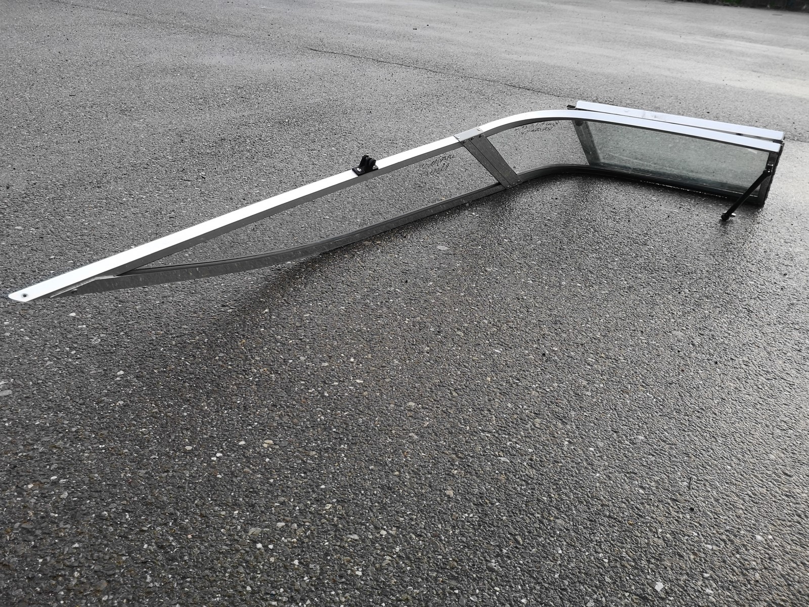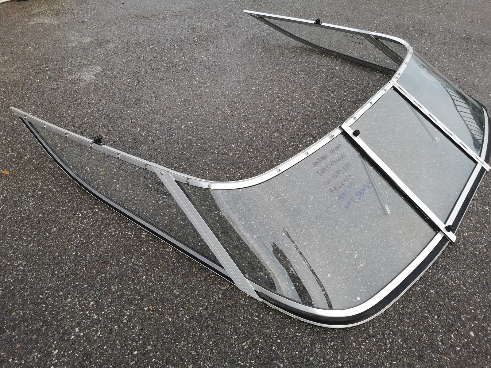 Pare brise aluminium pour SUNBIRD REGENCY 195, trés bon état.Dimensions:-largeur 1900mm-longueur 1900mm-hauteur 320mm-porte 560X560mm
