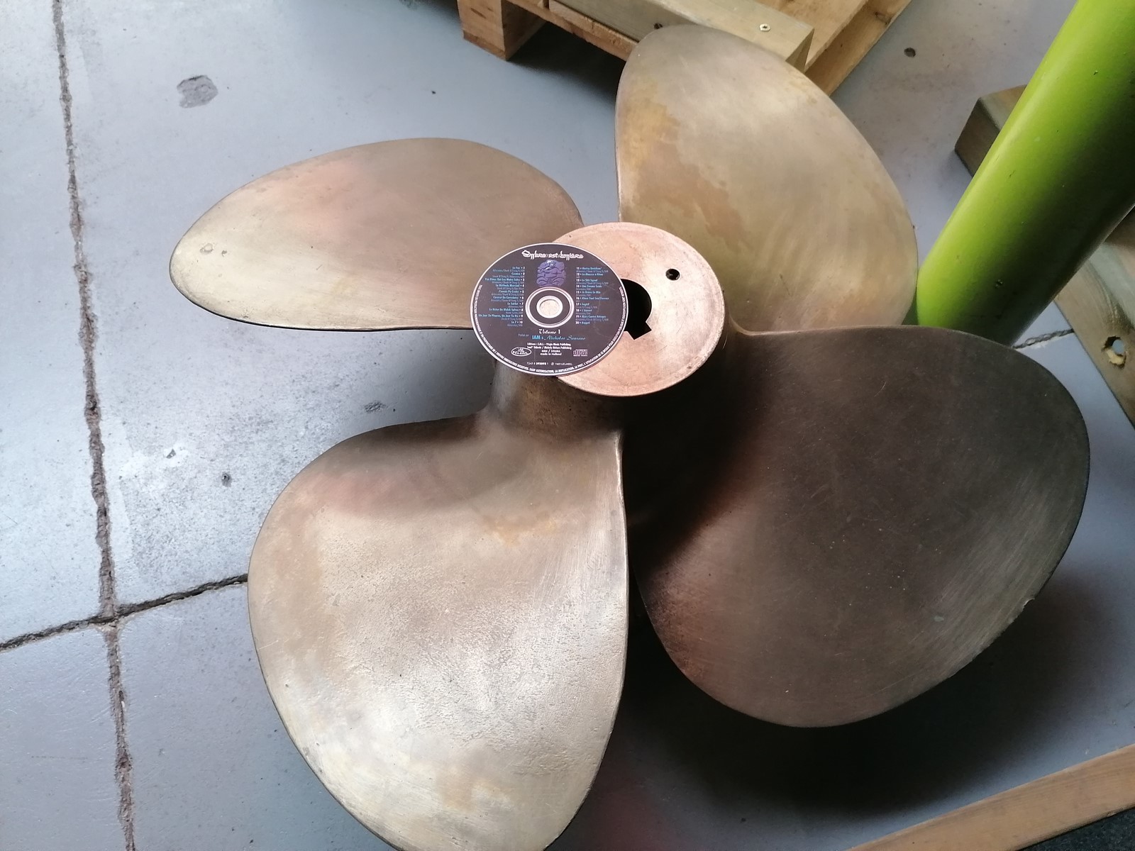 hélice en bronze pour decoration, poids 75kg, diamétre 800mm