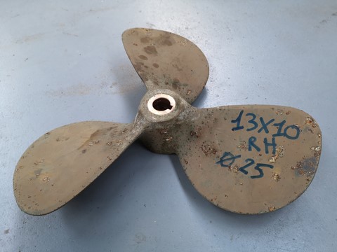hélice bronze 13X10 pour arbre 25mm, trés bon état navigation eau douce