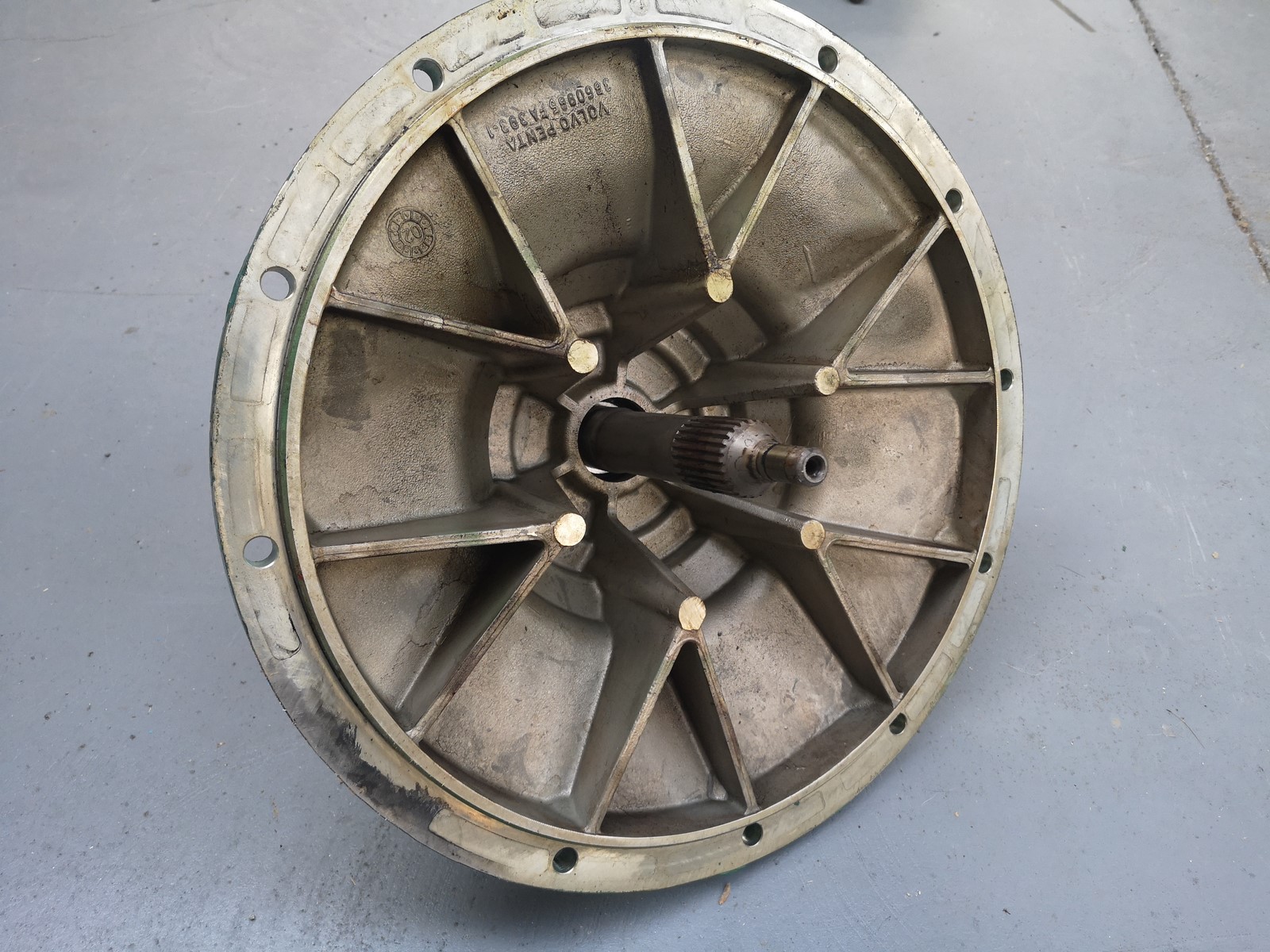 Cloche moteur VOLVO pour 6 cylindres diesel AD41P-A avec arbre et roulements recent, piéce en état neuve.