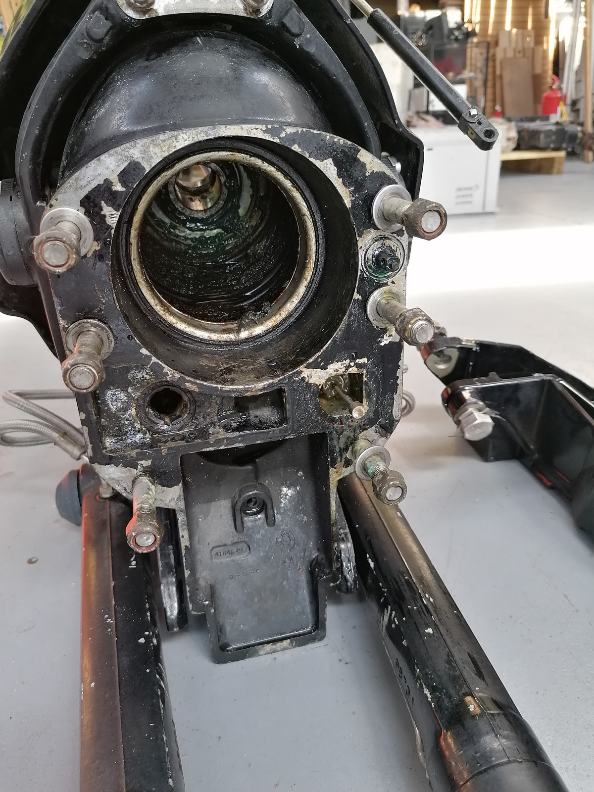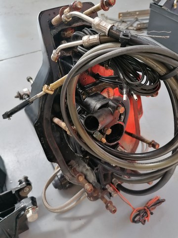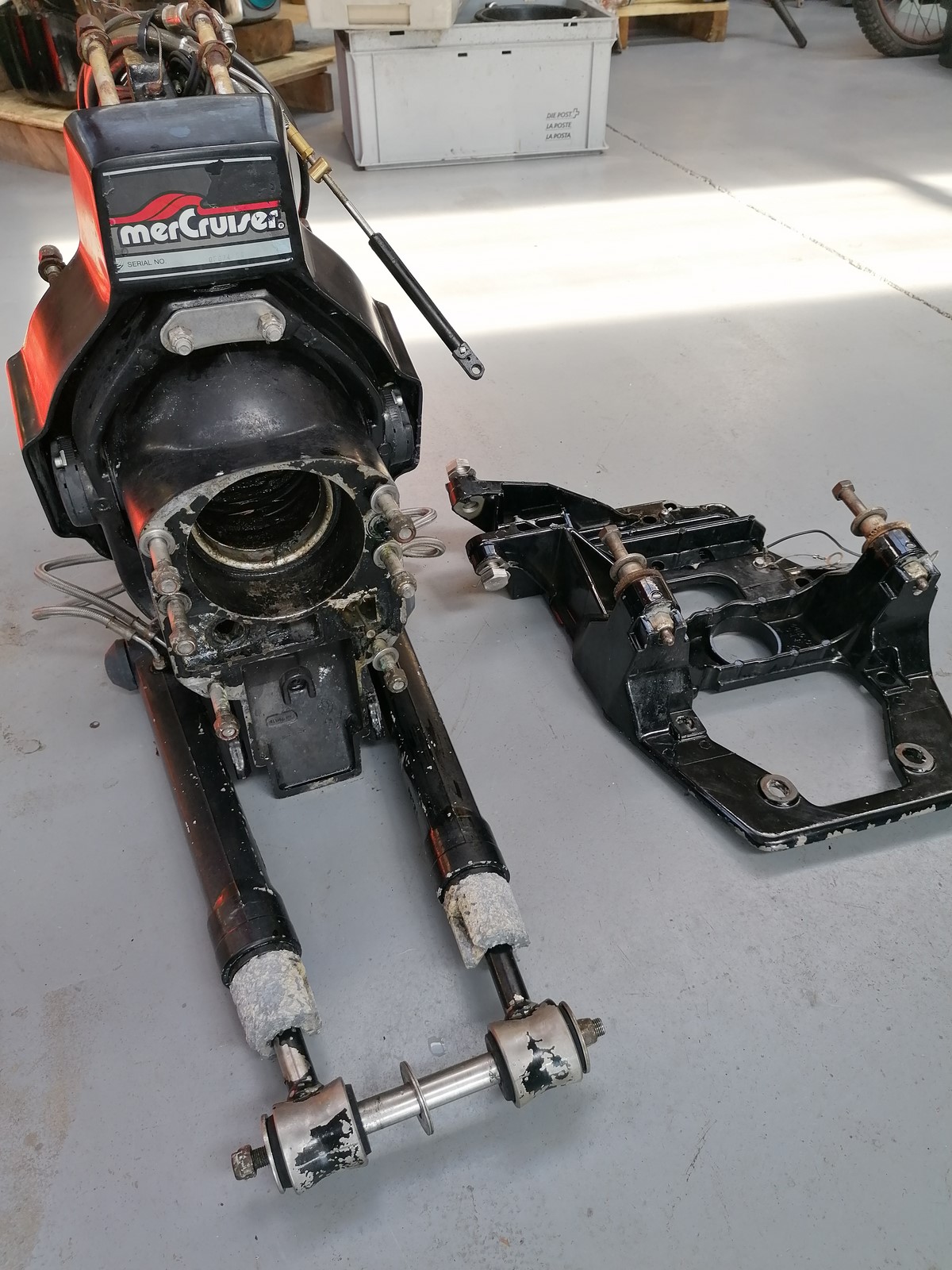 platine MERCRUISER BRAVO compléte avec visseries, contre-platine et vérins, trés bon état navigation eau douce, pas d'électrolyse.