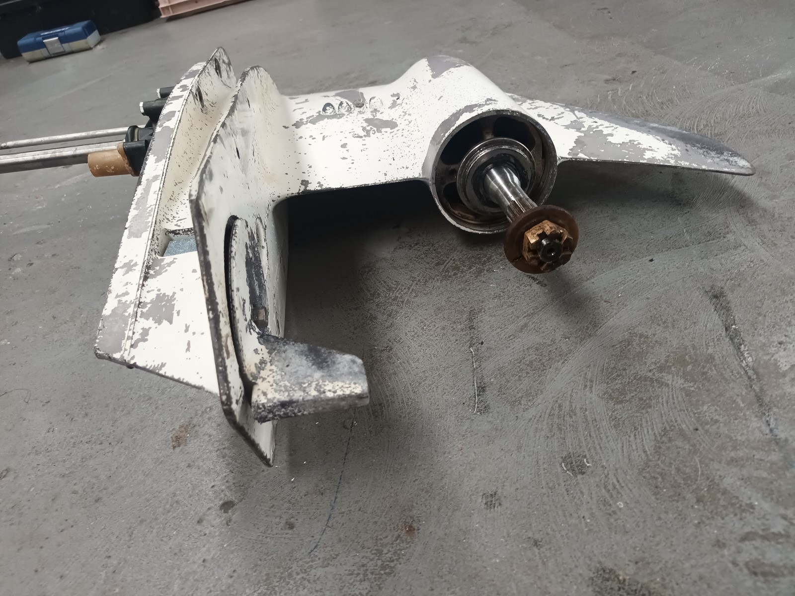 pied embase pour moteur EVINRUDE ou JOHNSON 90cv, pas d'eau dans l'huile, vis de vidange remplacer par une plus grosse