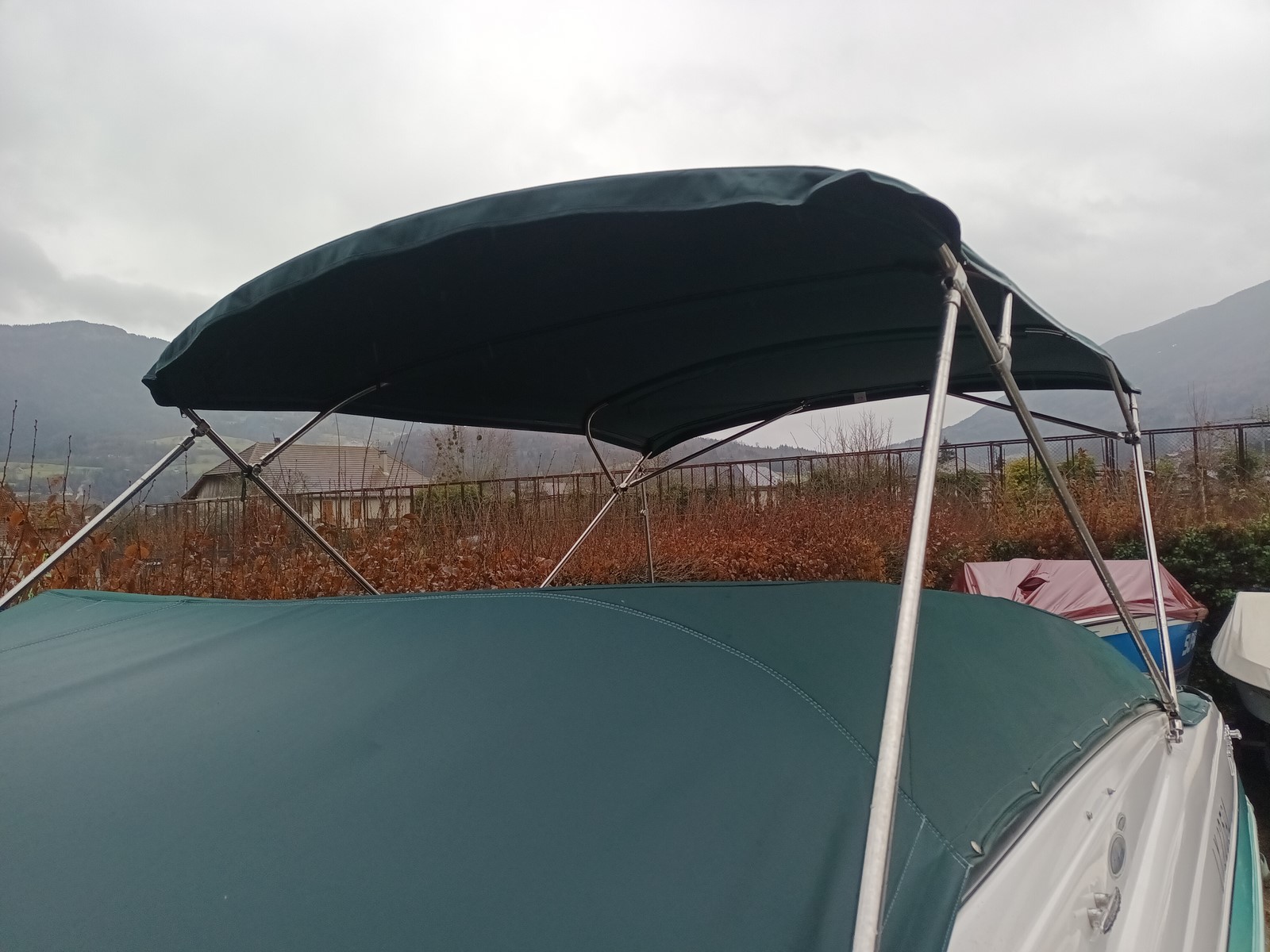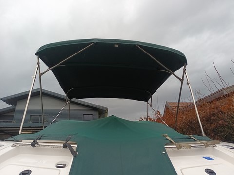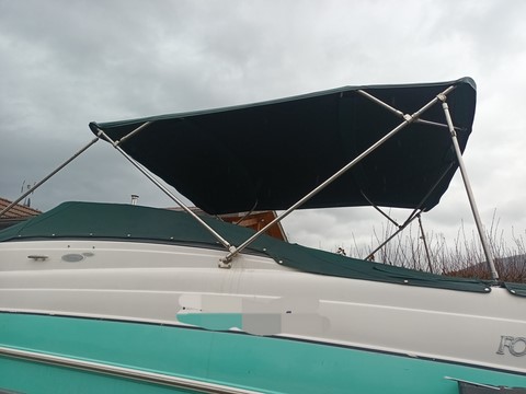 bimini taud de soleil inox FOURWINNS FUNSHIP 274, trés bon état, housse de protection, fixationslargeur 2300mmhauteur 1600mmlongueur 2600mm