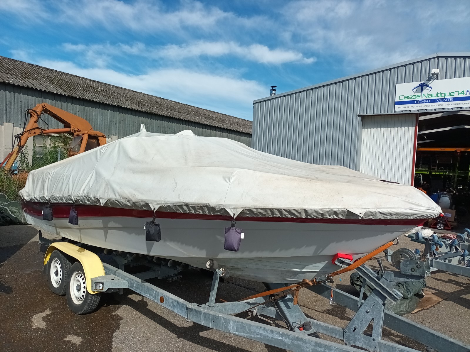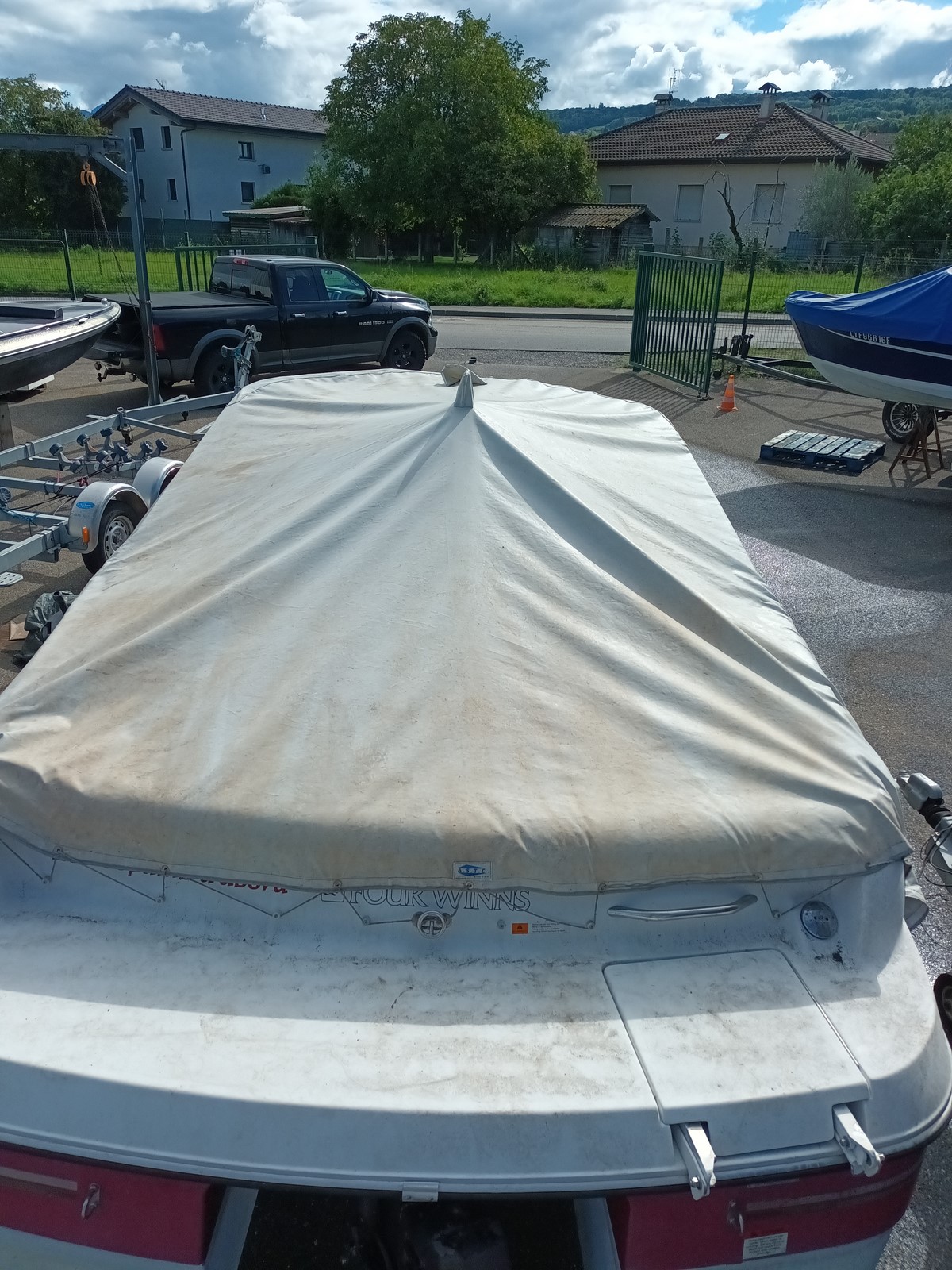 taud complet pour FOURWINNS HORIZON 190, bon état toile souple pas de dechirure, systéme de contre-poids pour une installetion facile