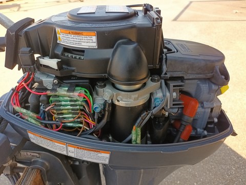 moteur YAMAHA 8cv 4 temps HIGH THRUST, arbre longt, démarrage électrique et manuelle, barre franche, réservoir carburant 12 litres, compréssions moteur ok, n'a jamais connu l'eau salée