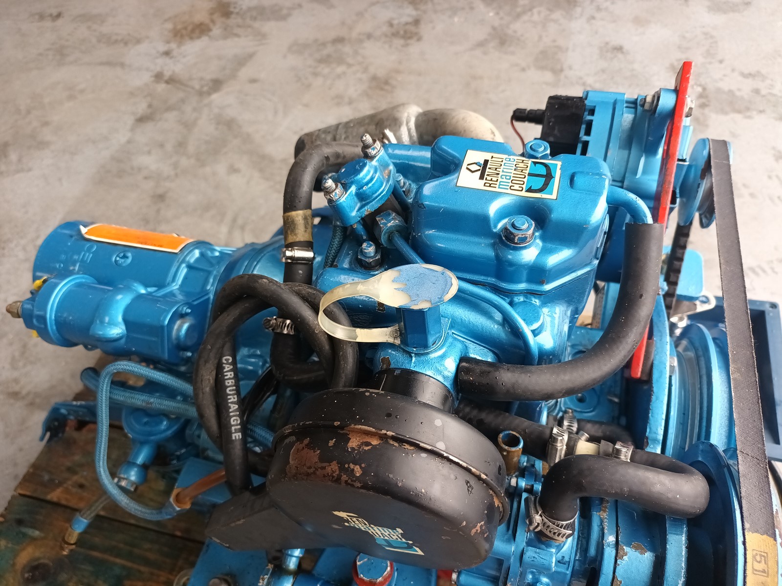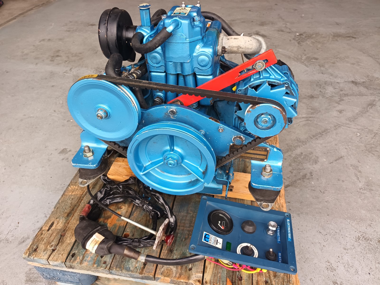 moteur RENAULT COUACH RC8D, 780h de navigation uniquement en eau douce, complet avec faisceau et tableau de bord