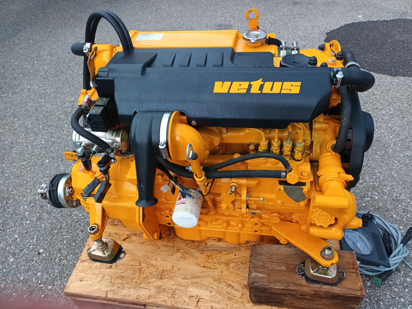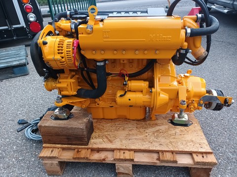 moteur VETUS M445 de 42cv avec inverseur sortie coudée, tableau de bord, 2 clés de contacte, faisceaux, accouplement souple, état neuf 35h de navigation uniquement en eau douce
