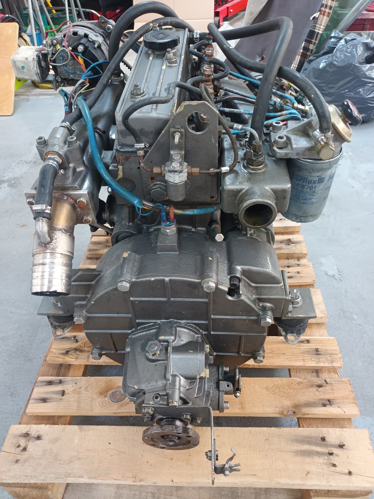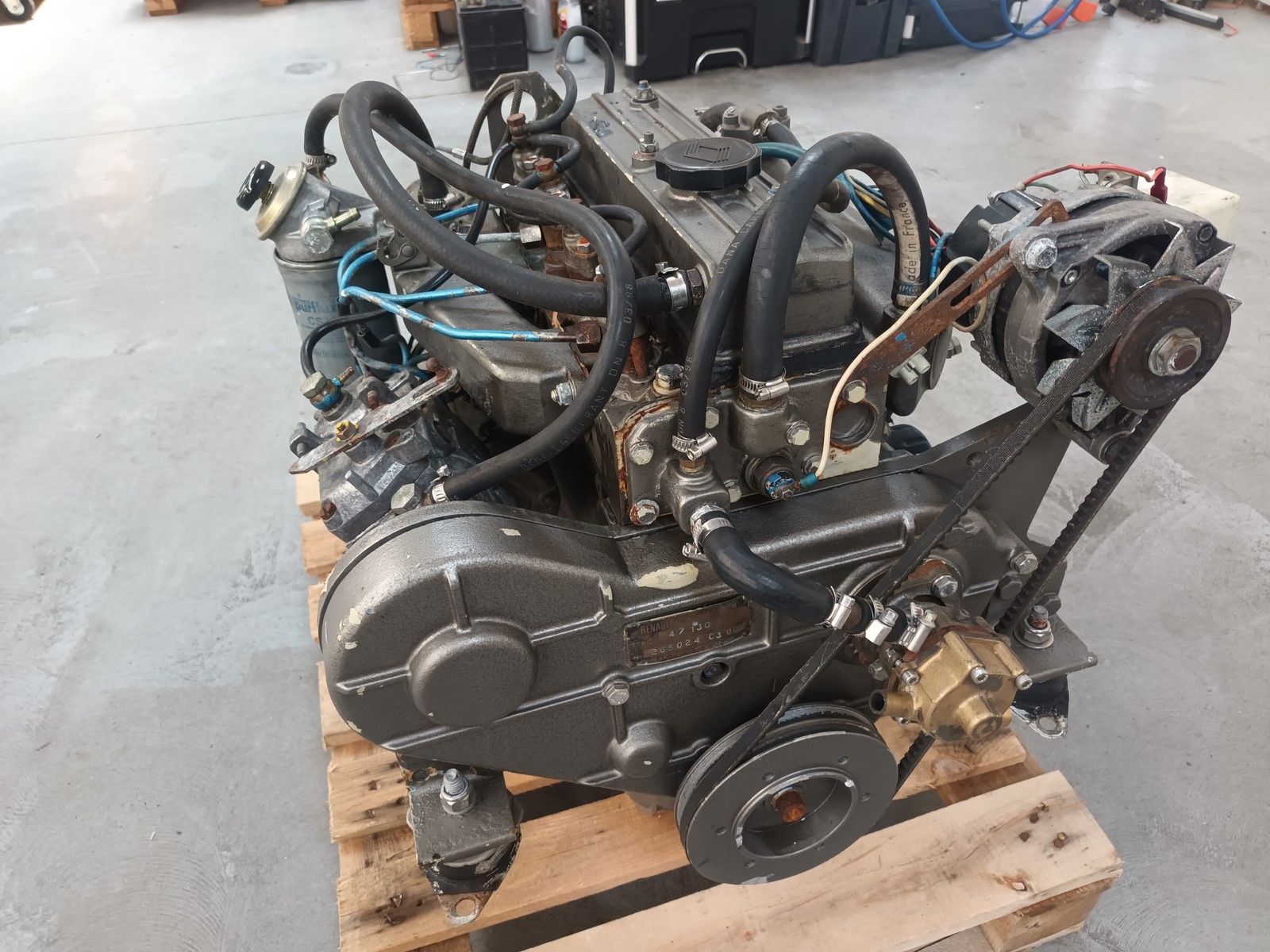 piéces moteur RENAULT COUACH diesel 4-130, le moteur n'a jamais connu l'eau saléepompe a eau 150€inverseur 300€coude échappement inox 150€collecteur échappement 250€démarreur 100€etc...