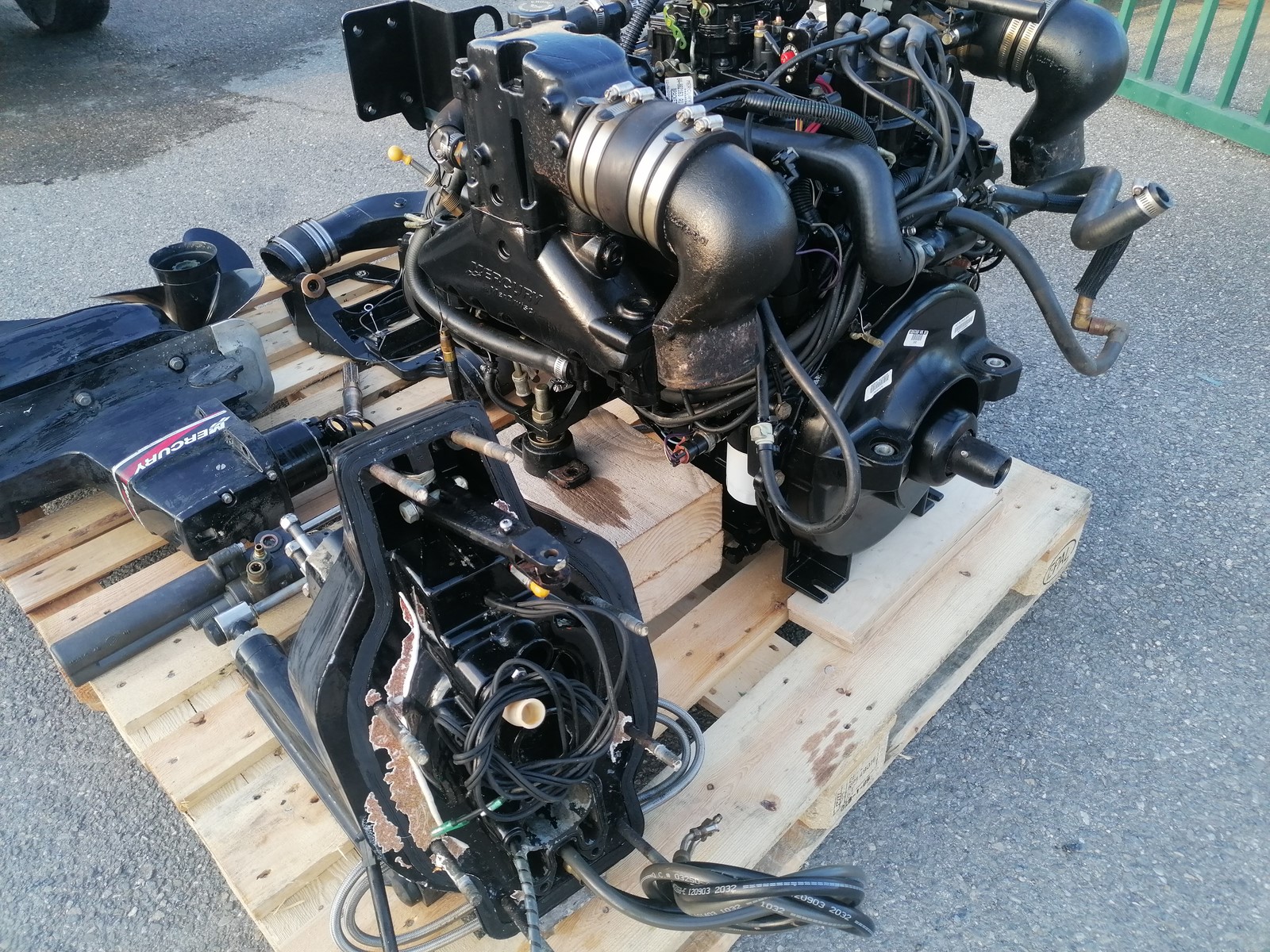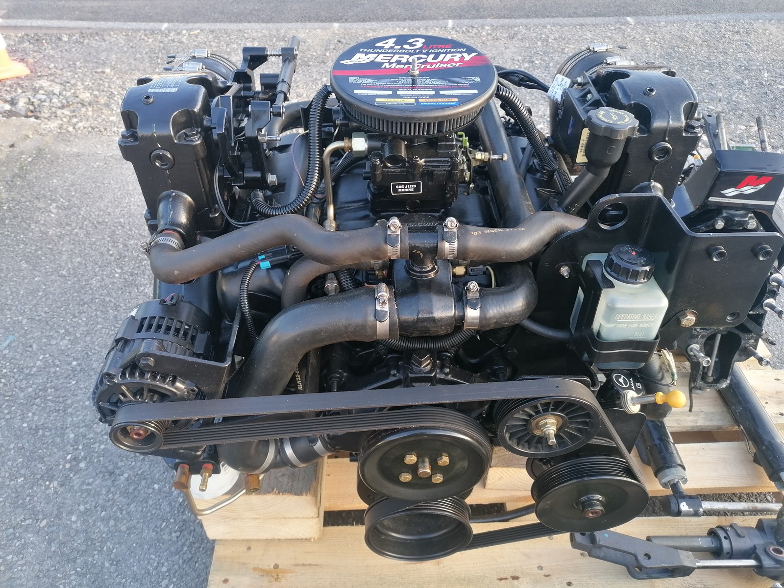 ensemble moteur MERCRUISER V6 4.3l VORTEC 190cv, état neuf, complet avec faisceaux, instruments, commande de gaz, platine et embase ALPHA ONE G2 (turbine et souflets ok), hélice, pompe de trim, diréction assistée
