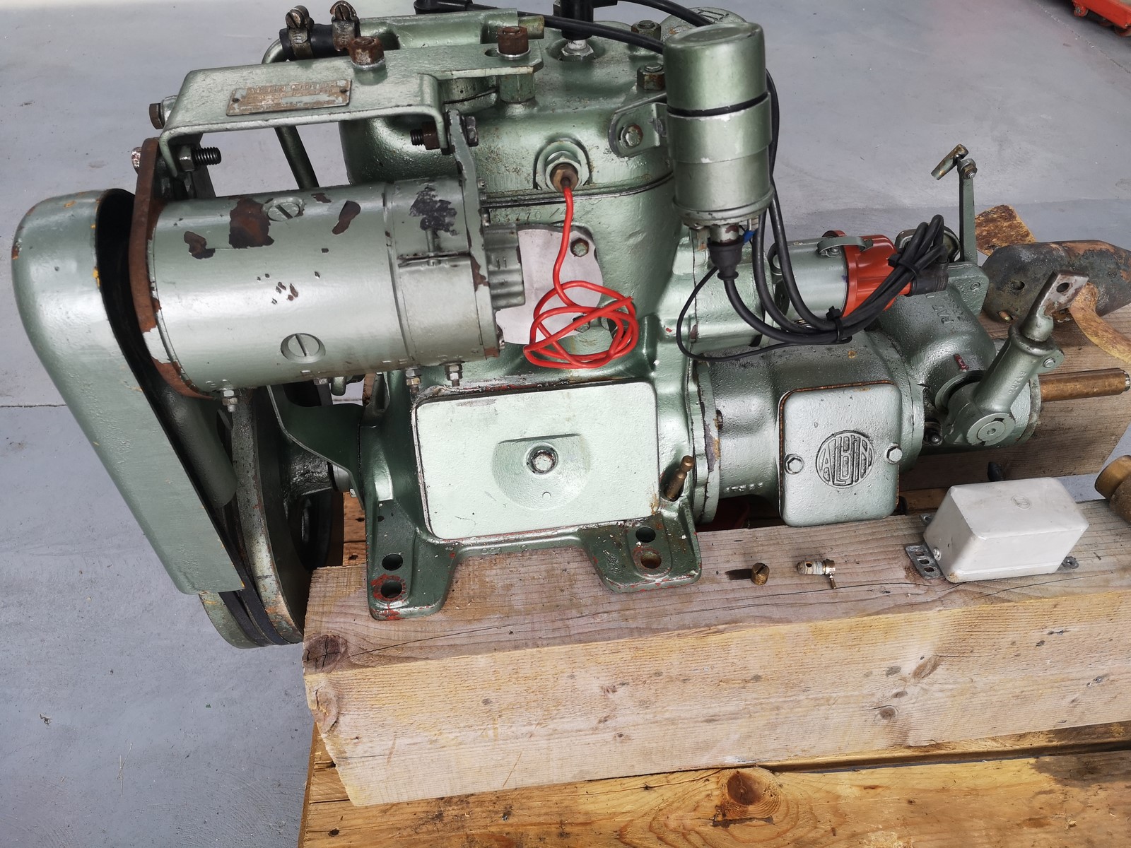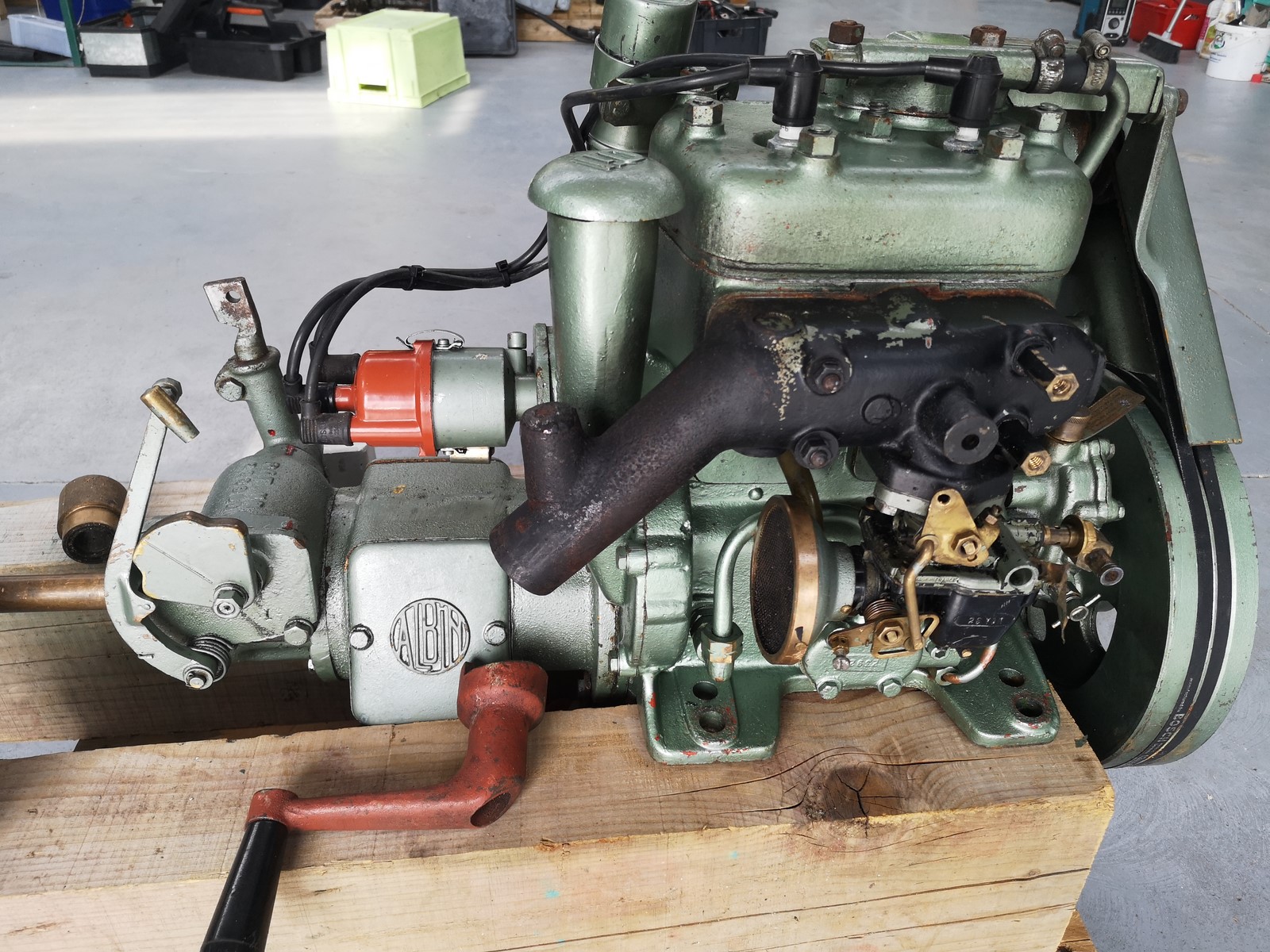 moteur essence ALBIN MOTOR 21 K avec hélice spécifique a ce modéle, trés bon état compréssions moteur ok, manque doigt d'allumeur