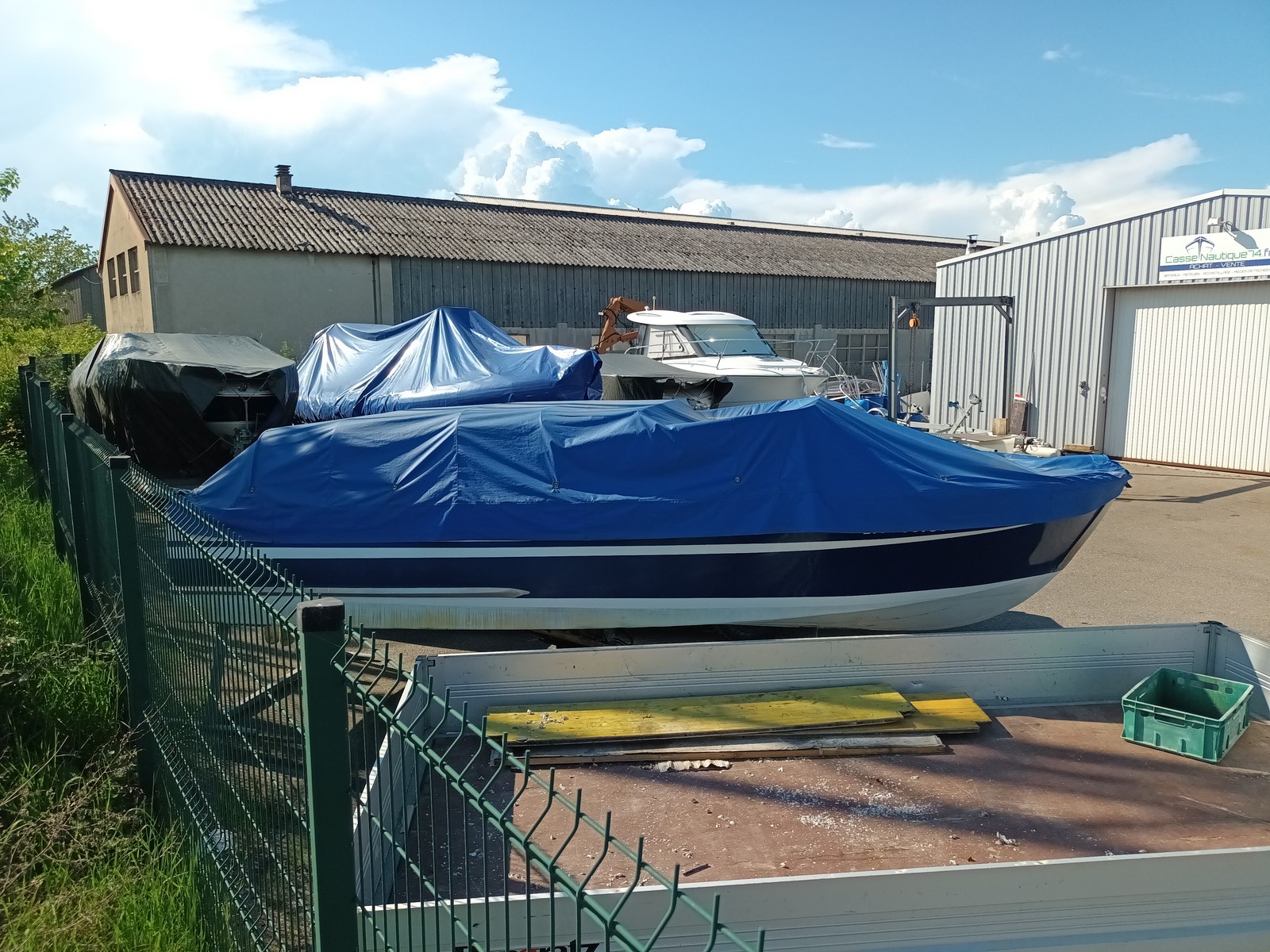 l'ensemble a 500h de navigation uniquement en eau douce, vendu sans remorque, taud complet.