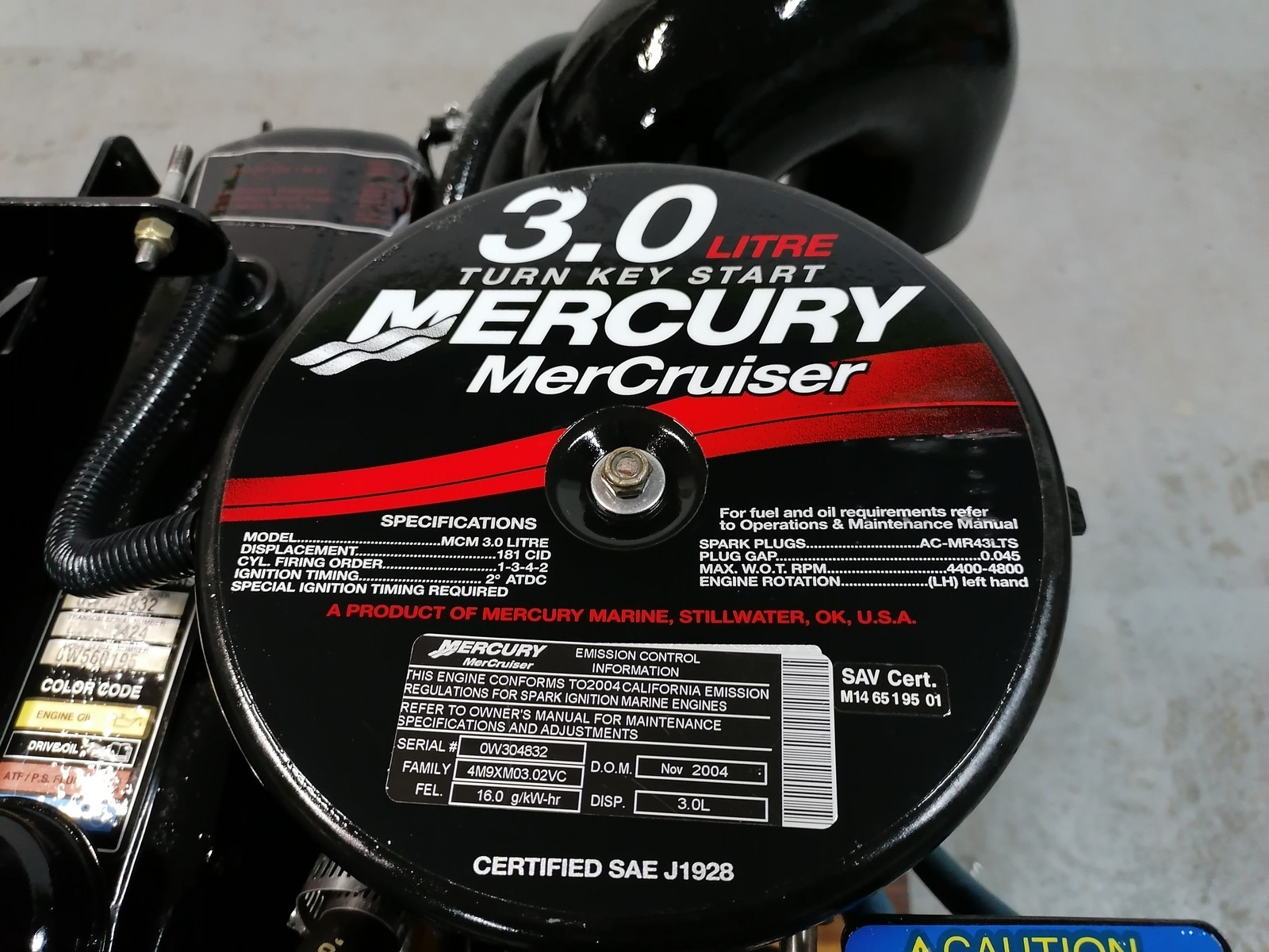 moteur MERCRUISER 3.0 TKS, 50h de navigation uniquement en eau douce, compréssions moteur ok, sans faisceau électrique