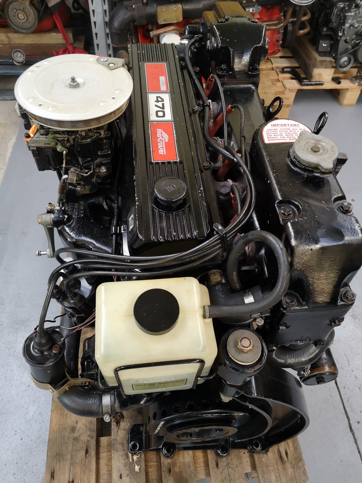 Moteur 4 cylindres MERCRUISER type 470 (170cv), double refroidissement, compressions moteur ok 150PSI, trés bon état navigation uniquement en eau douce