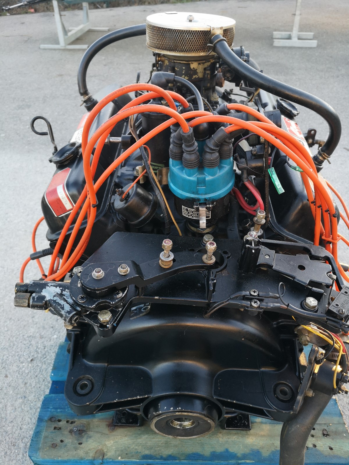 Compressions moteur OK (8X155 PSI), le moteur totalise 510h de navigation uniquement en eau douce, vendu sans collecteurs d'echappement.