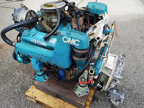 Moteur V6 OMC 3.8l navigation uniquement en eau douce, compressions moteur ok, direction assistée, trim et platine.