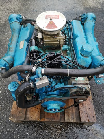 Moteur OMC V8 FORD 5.8l 250cv, compressions ok, systéme de trim hydrolique sur les pattes moteur, collecteurs ok, navigation uniquement en eau douce