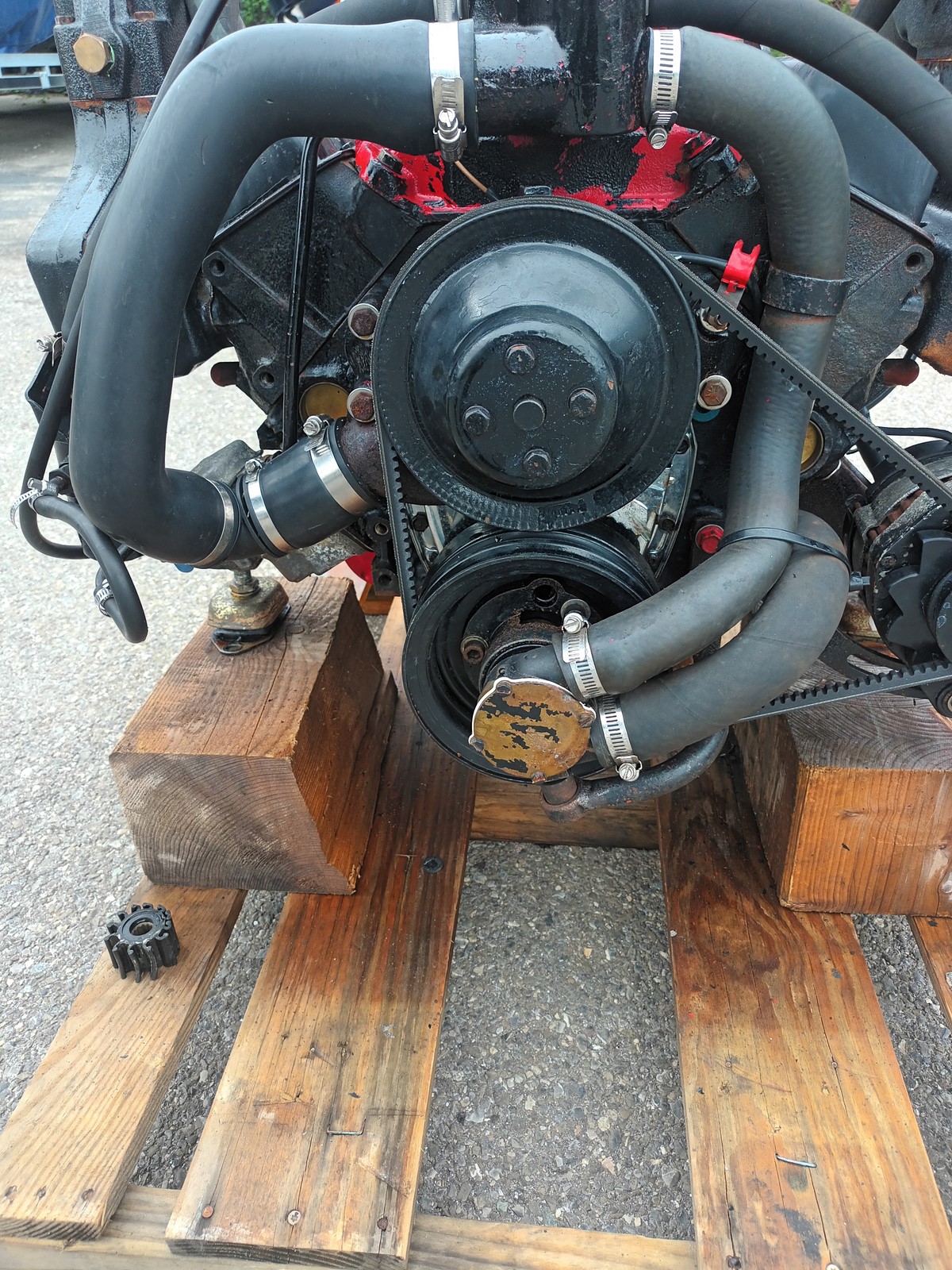 le bloc moteur a moins de 50h compréssions ok, prévoir le remplacement des collécteurs d'échappements (filetages des bouchons de vidanges des circuits d'eau hs, coude échappement ok) et la pompe de brassage, le moteur n'a jamais connu l'eau salée