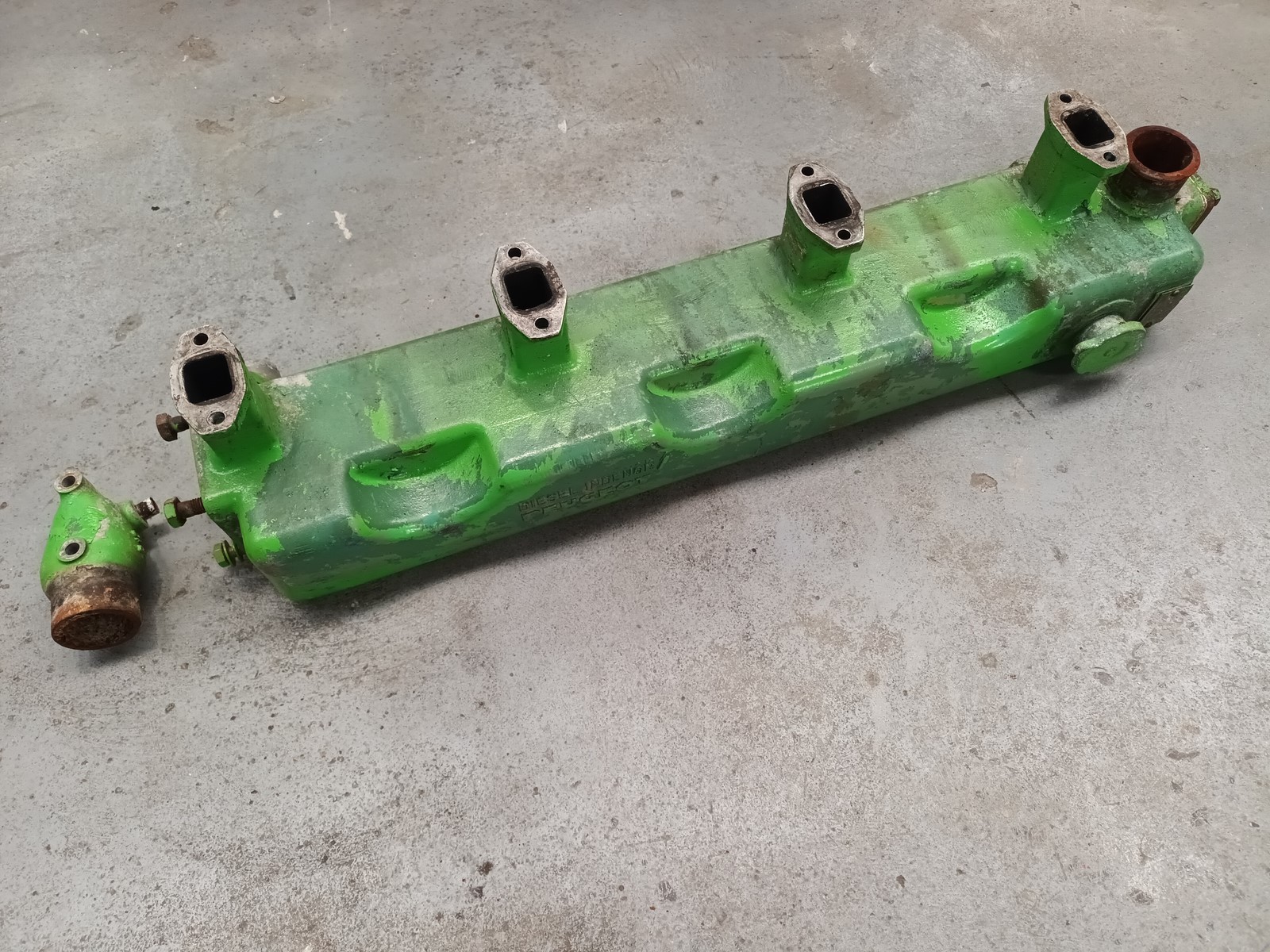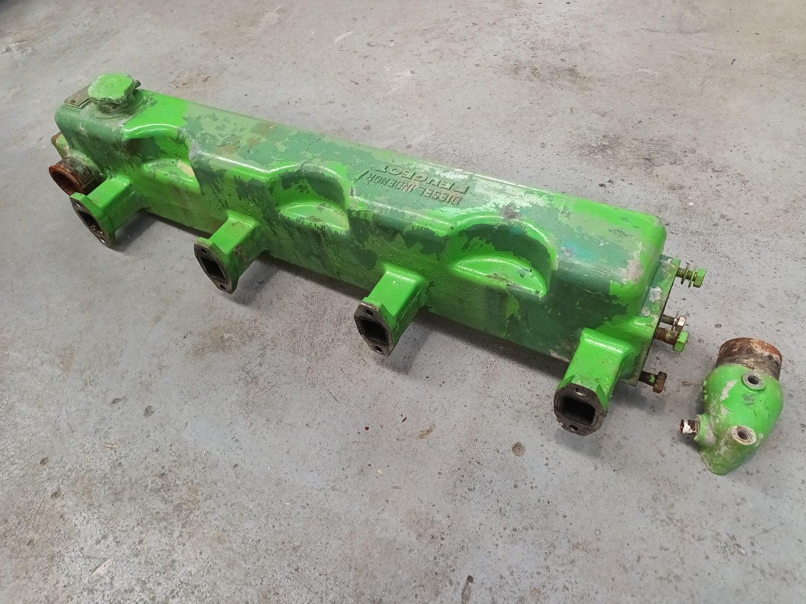collecteur échappement en aluminium pour moteur diésel 6 cylindres PEUGEOT INDENOR, trés bon état n'a jamais connu l'eau salée