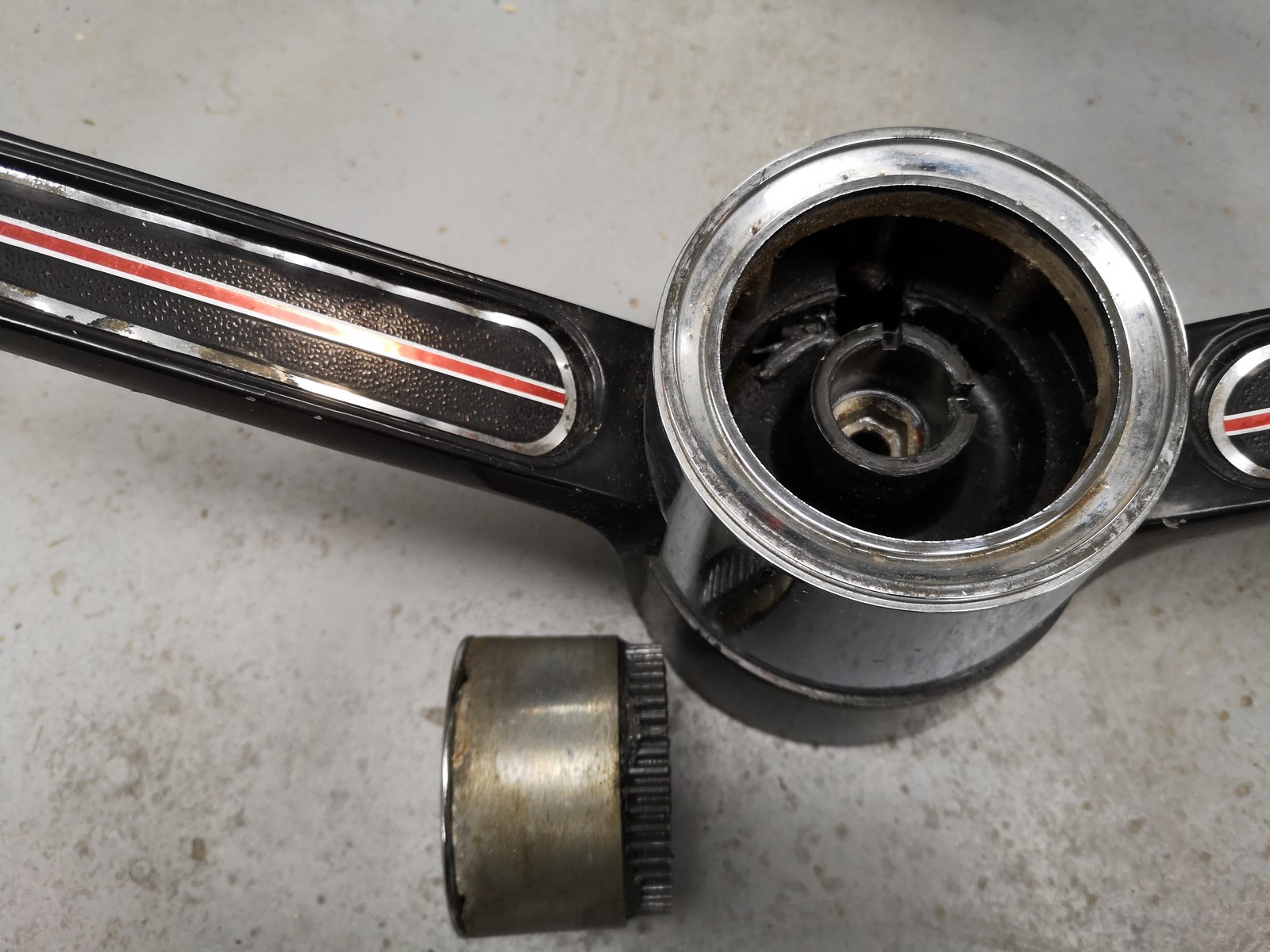 Volant ancien en aluminium de marque RIDEGUIDE pour boitier de diréction MERCRUISER, pas d'électrolyse navigation eau douce