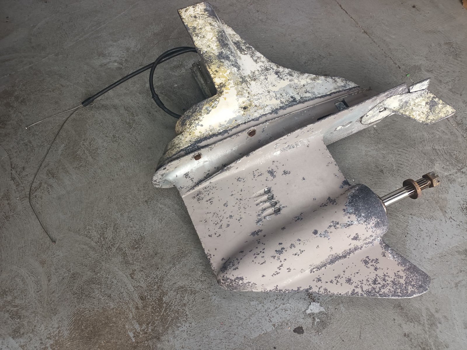 pied d'embase a cable OMC 800, cable en très bon état, pignons ok, pas d'eau dans l'huile