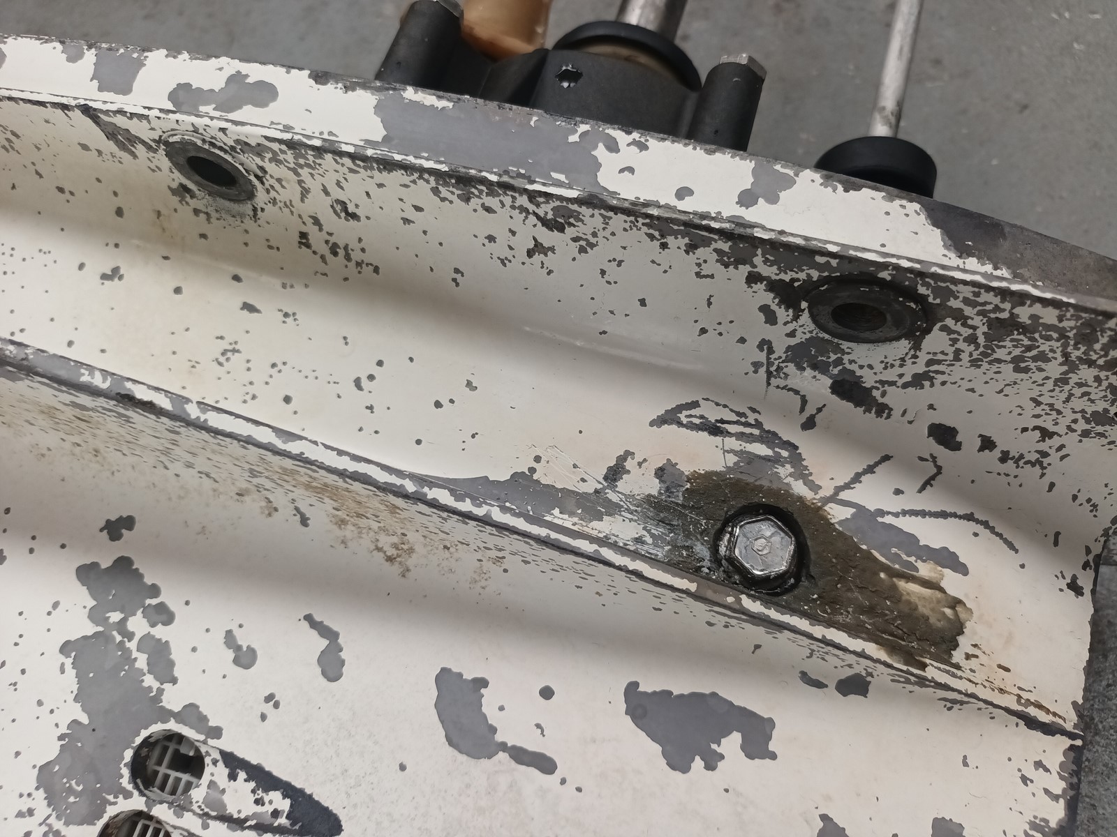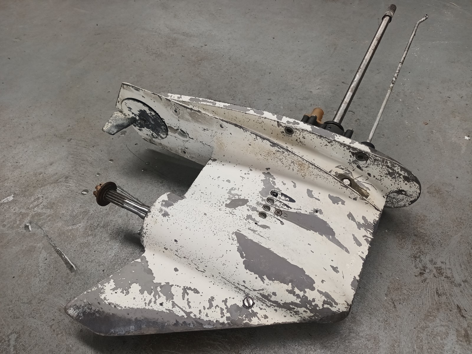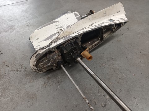 pied embase pour moteur EVINRUDE ou JOHNSON 90cv, pas d'eau dans l'huile, vis de vidange remplacer par une plus grosse
