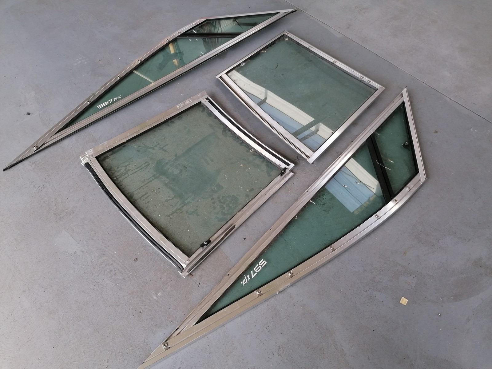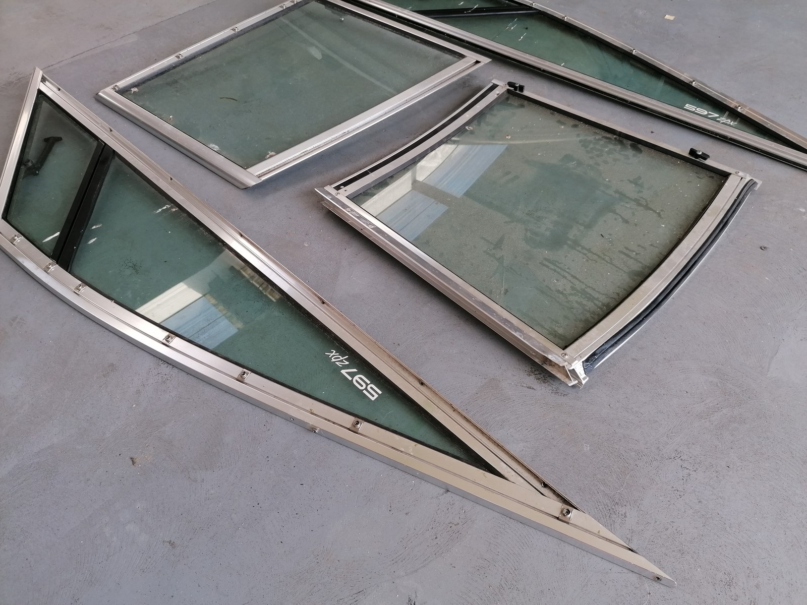 pare brise verre et aluminium pour STINGRAY 597 ZPX, manque demi coté droit