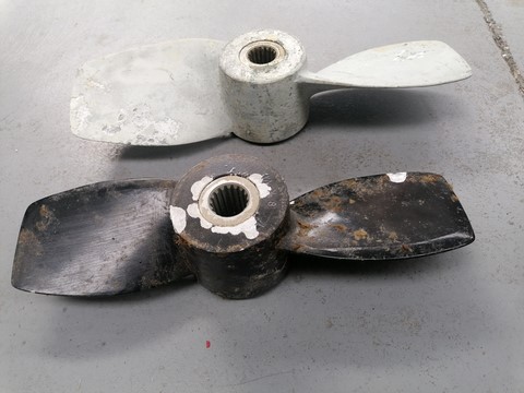 hélice aluminium VOLVO pour S-DRIVE 110/120, dimensions: noir 14X8 et blanche 16X11