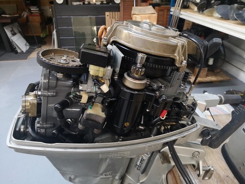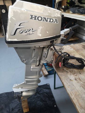 Moteur HONDA 9.9cv 4 temps, arbre longt, démarreur électrique, barre franche, remplacement turbine de refroidissement et des huiles