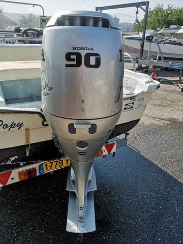 moteur HONDA 90cv 4 temps de 1996, hélice neuve, vidanges ok turbine de refroidissement neuve, complet avec commande de gaz, instrumentations et faisceaux.