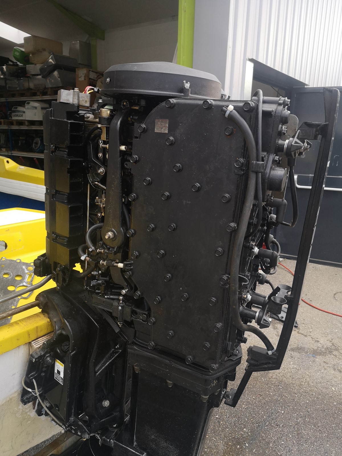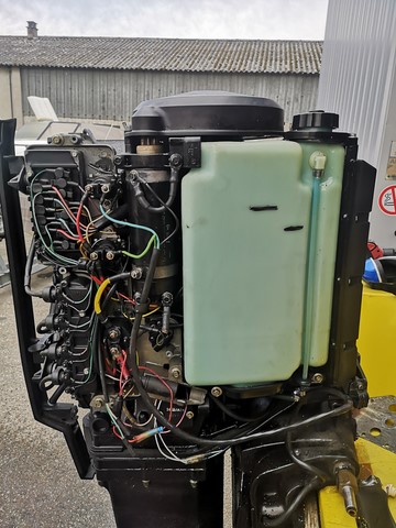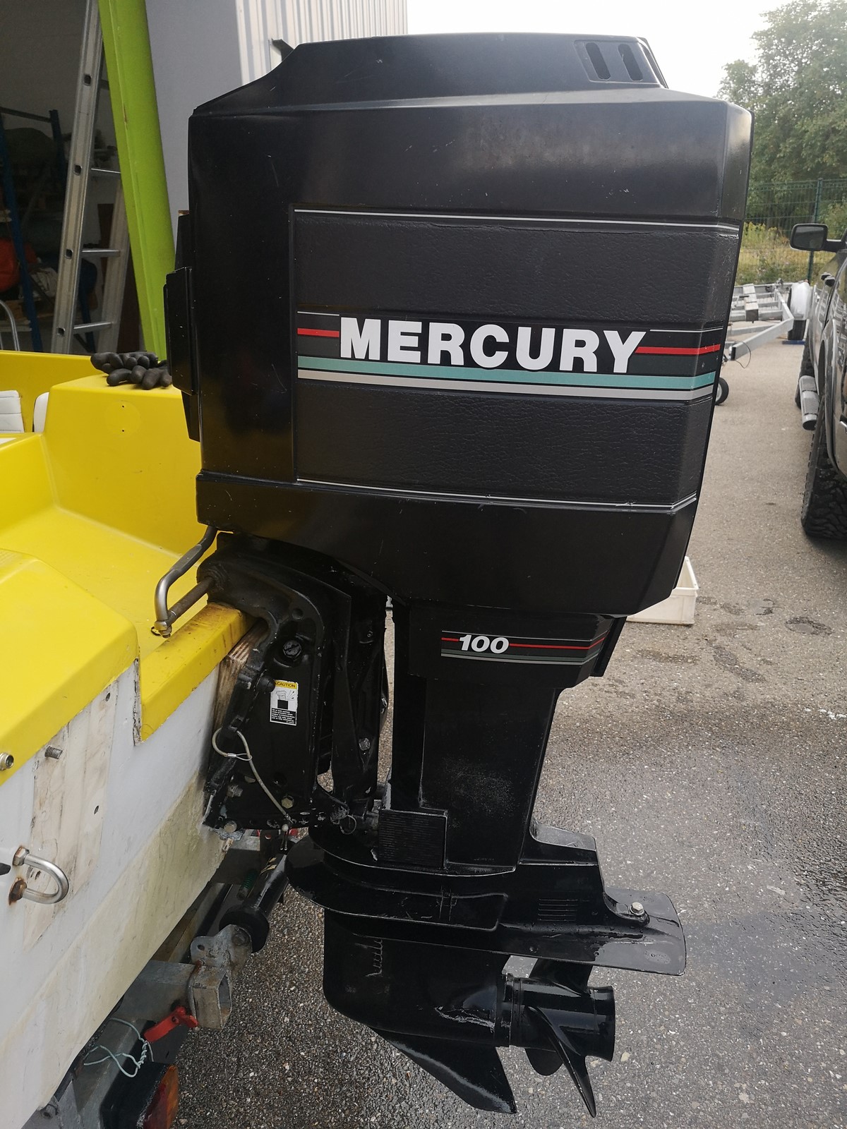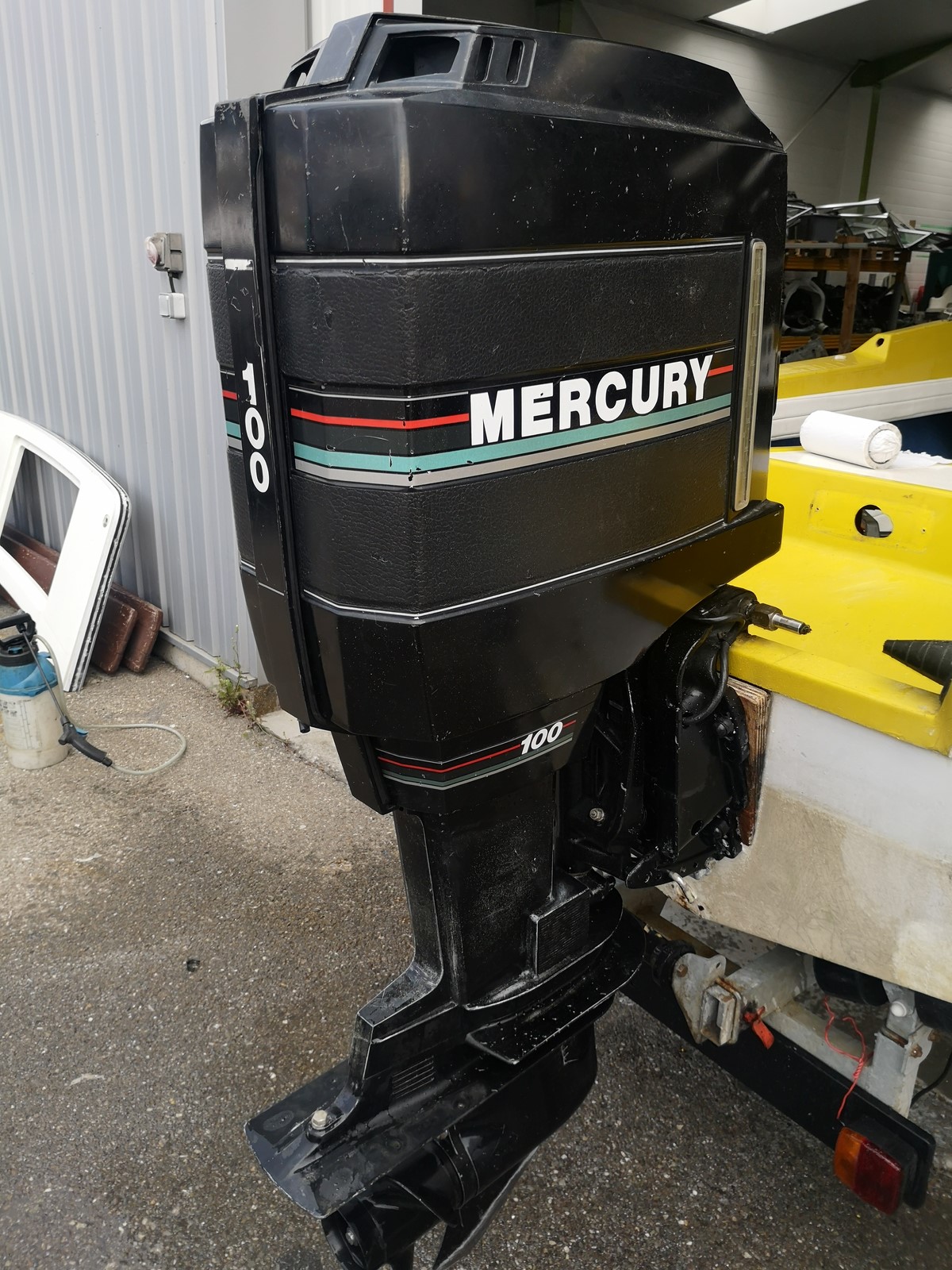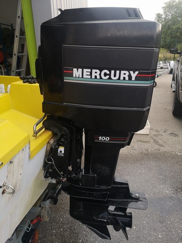 moteur MERCURY 100cv 2 temps 561H de navigation uniquement en eau douce, compressions moteur ok (4X125PSI), allumage ok, arbre longt,pignons embase et hélice ok, moteur electrique du trim hs