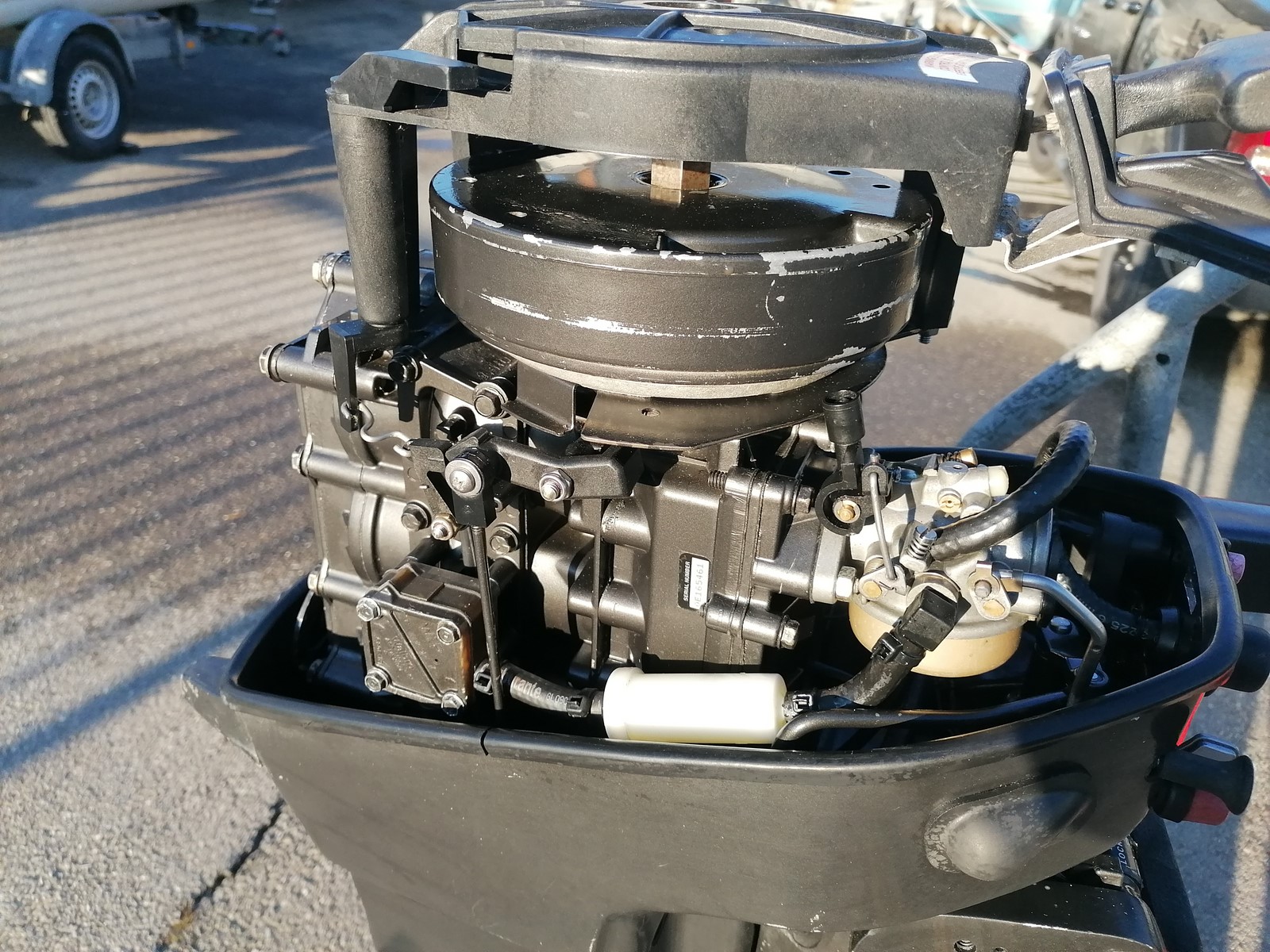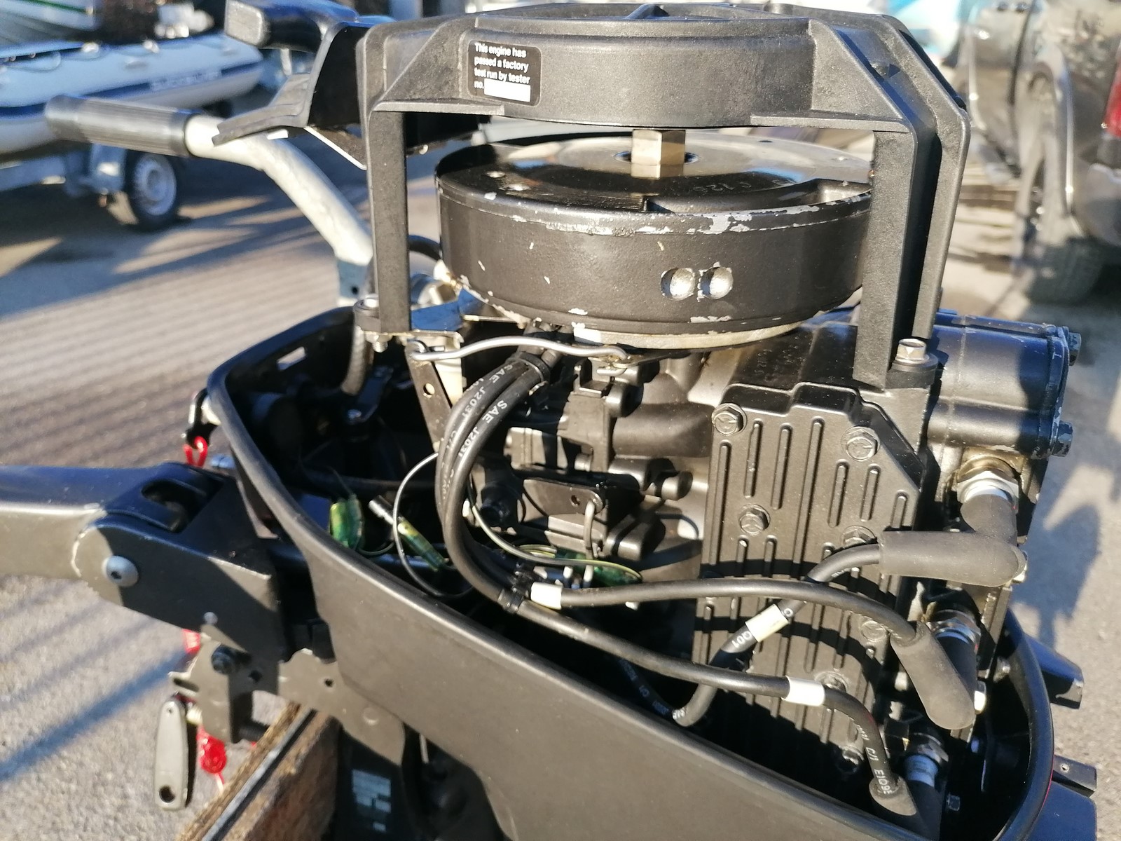 moteur FORCE 25cv 2 temps 3 cylindres, moteur d'une annexe qui a connu seulement l'eau douce, compressions ok, démarrage manuel, barre franche, arbre court, réservoir 22 litres, vidéo du moteur tournant sur page FACEBOOK casse nautique 74