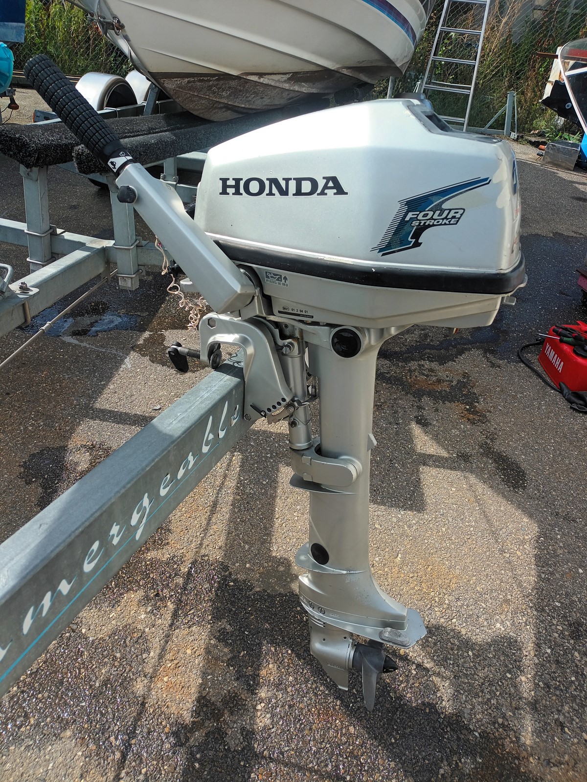 moteur HONDA 4.5cv 4 temps, arbre longt, barre franche, démarrage manuelle, régulateur de courant 12vtrés bon état n'a jamais connu l'eau salée