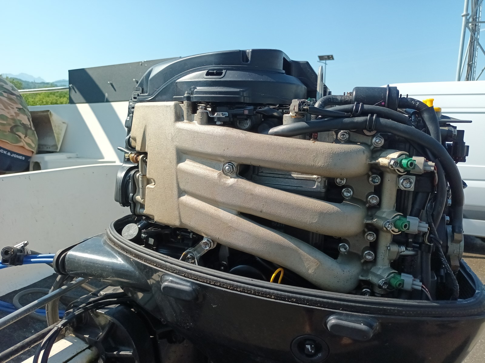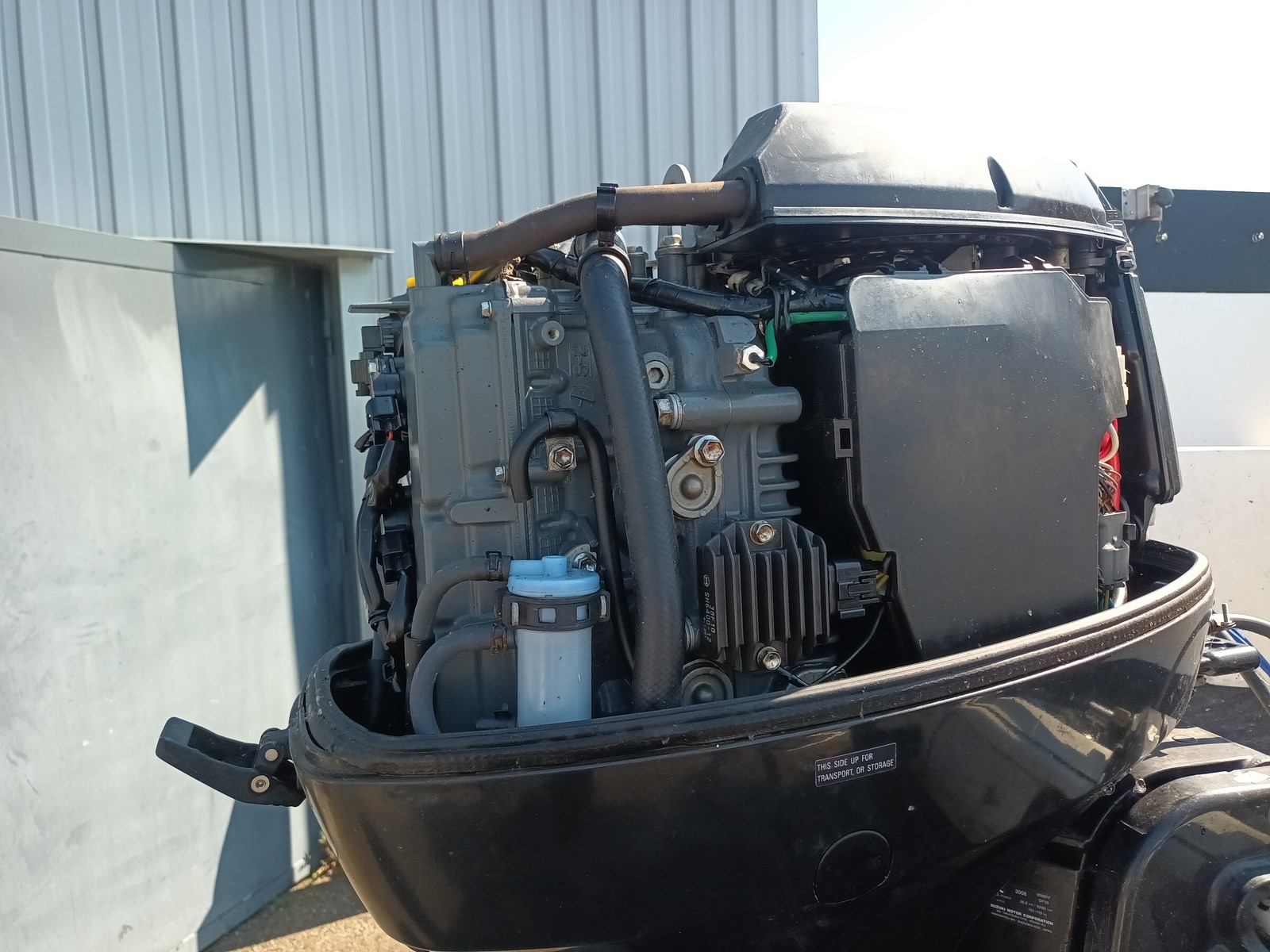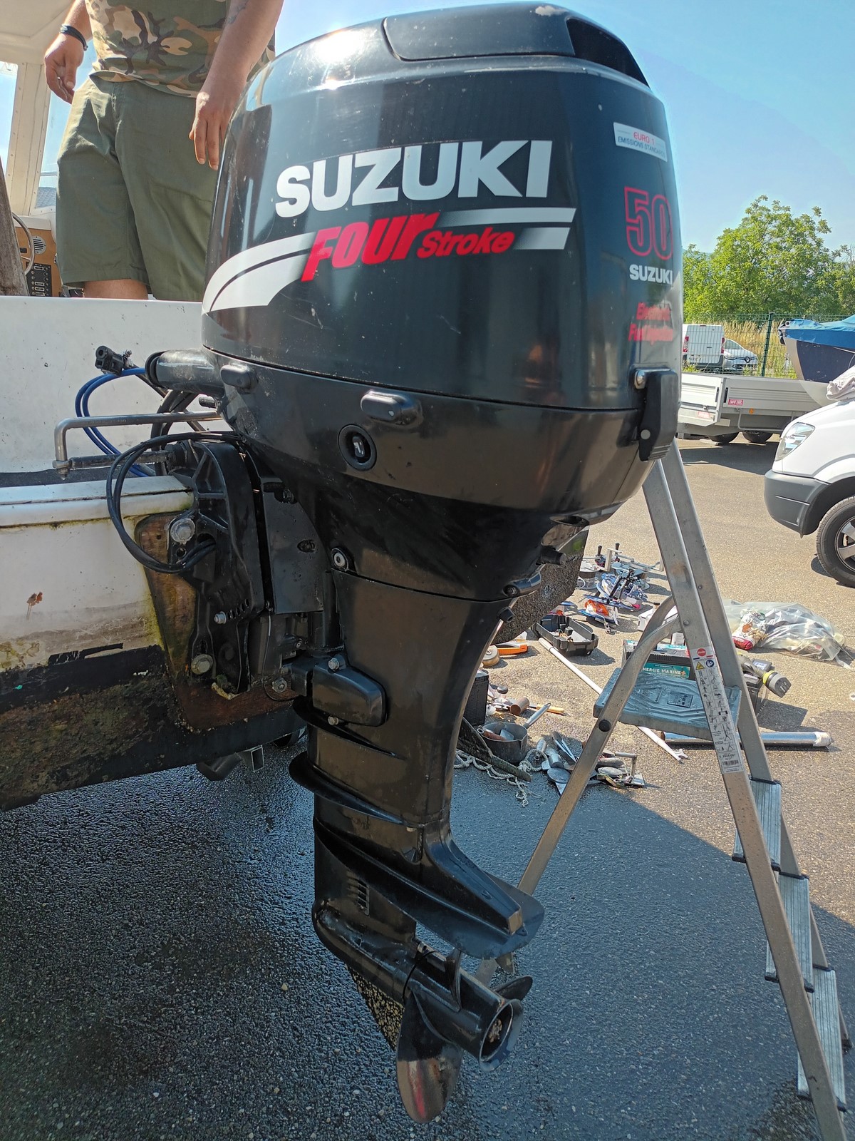 moteur SUZUKI DF50 4 temps de 2008, 410h de navigation uniquement en eau douce, arbre longt, trim, complet avec cables de commandes, faisceaux, commande moteur et instruments.