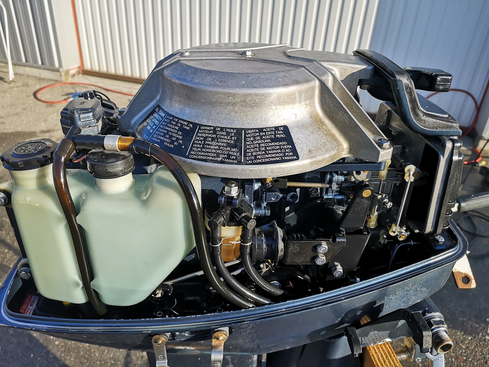 Moteur YAMAHA 25cv 2 temps bi-cylindres, arbre longt, commande a distance, démarrage manuel, systémé autolube avec réservoir d'huile incorporé pas besoin de faire le mélange dans le réservoir a carburant, compréssions moteur ok, pas d'eau dans l'huile d'embase aucun soucis de fonctionnement, navigation uniquement en eau douce