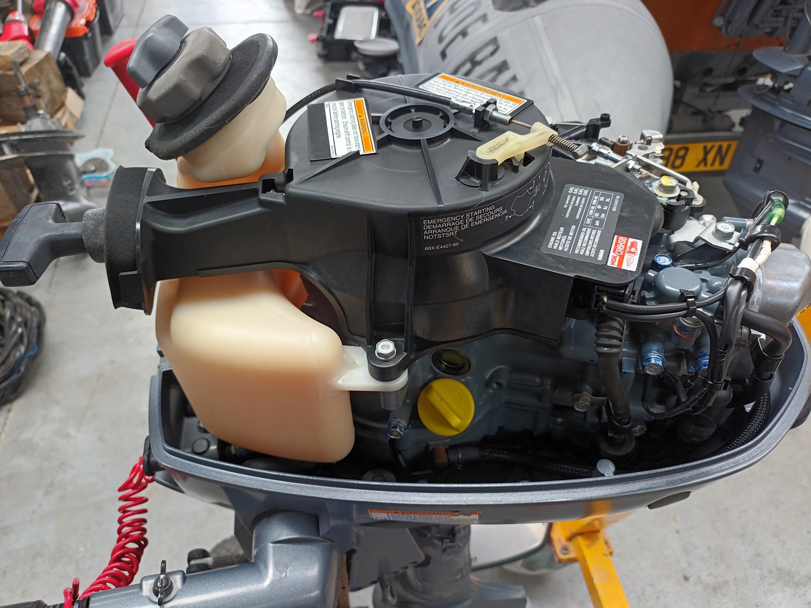 moteur 4 temps YAMAHA 4cv (révision du 29/04/2025 avec remplacement de la turbine de refroidissement), le moteur n'a jamais connu l'eau salée.