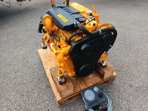 moteur VETUS M445 de 42cv avec inverseur sortie coudée, tableau de bord, 2 clés de contacte, faisceaux, accouplement souple, état neuf 35h de navigation uniquement en eau douce