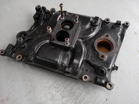 Plaque admission MERCRUISER pour V6 GM 4.3l, carburateur 2 corps, fixation par 8 vis horizontales.